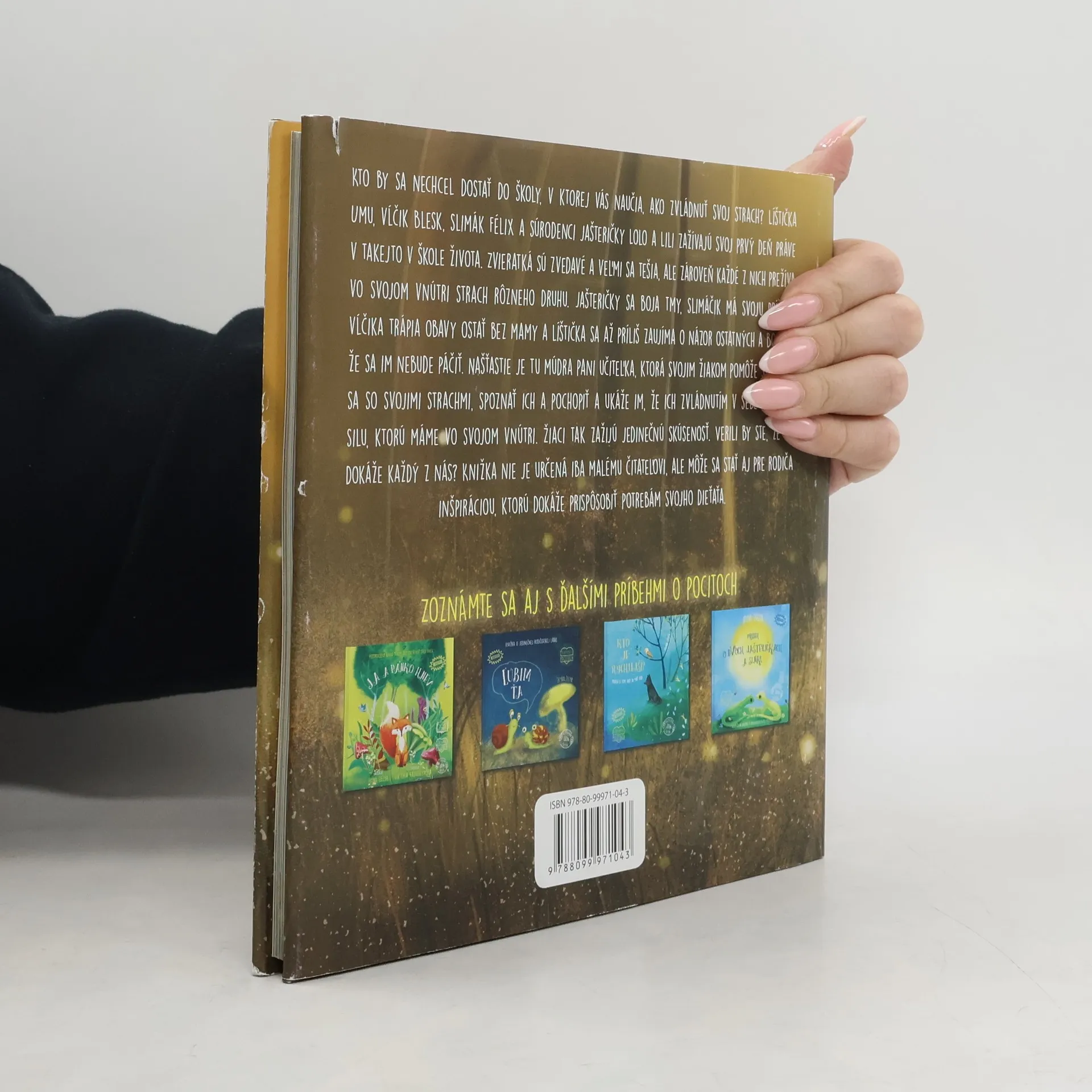 Kto by sa nechcel dostať do školy, v ktorej vás naučia, ako zvládnuť svoj strach? Líštička Umu, vĺčik Blesk, slimák Félix a súrodenci jašteričky Lolo a Lili zažívajú svoj prvý deň práve v takejto v škole života. Zvieratká sú zvedavé a veľmi sa tešia, ale zároveň každé z nich prežíva vo svojom vnútri strach rôzneho druhu. Jašteričky sa boja tmy, slimáčik má svoju príšeru, vĺčika trápia obavy ostať bez mamy a líštička sa až príliš zaujíma o názor ostatných a bojí sa, že sa im nebude páčiť.Našťastie je tu múdra pani učiteľka, ktorá svojim žiakom pomôže stretnúť sa so svojimi strachmi, spoznať ich a pochopiť a ukáže im, že ich zvládnutím v sebe nájdeme silu, ktorú máme vo svojom vnútri. Žiaci tak zažijú jedinečnú skúsenosť. Verili by ste, že to dokáže každý z nás? Knižka nie je určená iba malému čitateľovi, ale môže sa stať inšpiráciou aj pre rodiča, ktorú dokáže prispôsobiť potrebám svojho dieťaťa.