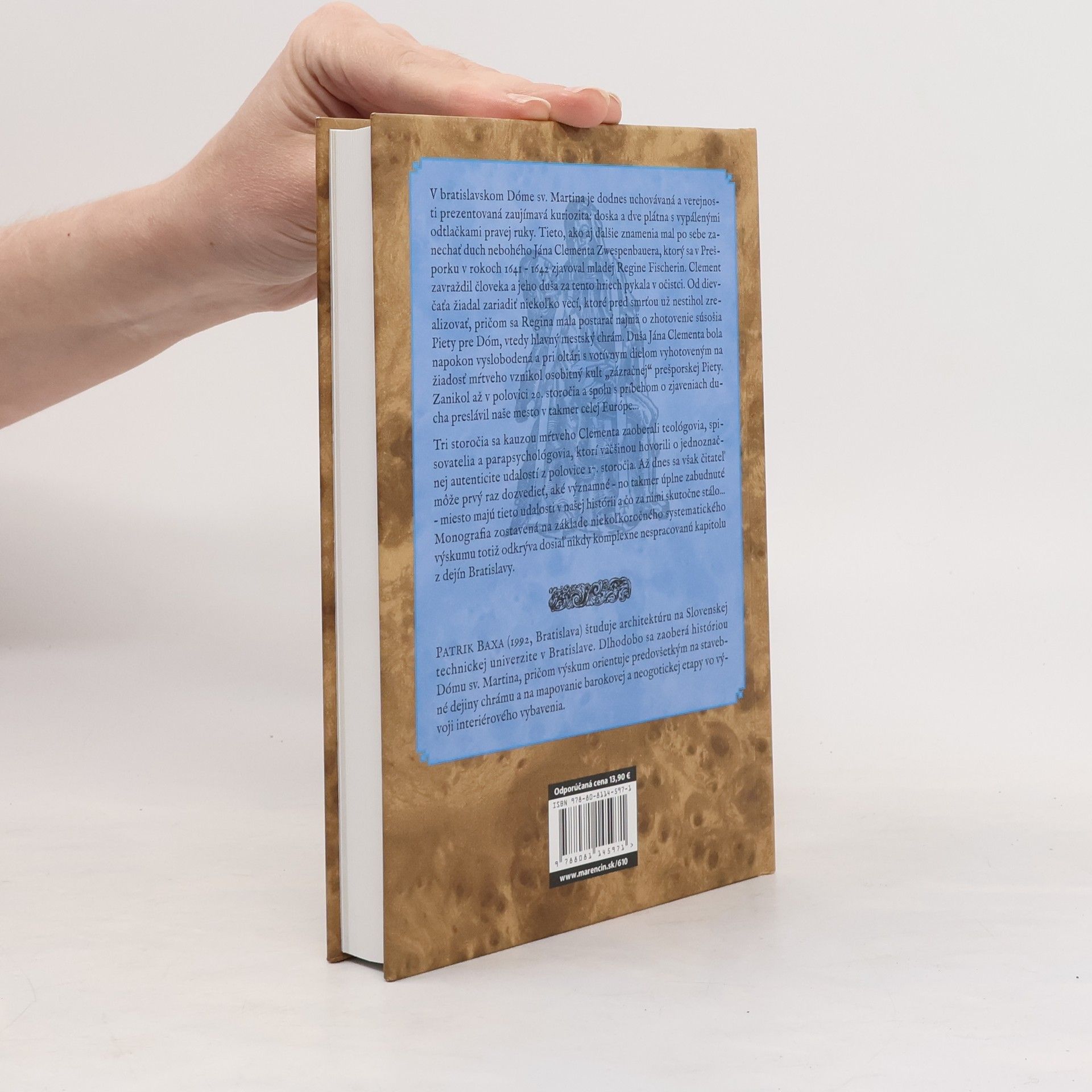 V Dóme sv. Martina sa nachádza doska a dve plátna s vypálenými odtlačkami ruky. Tieto znamenia mal po sebe zanechať duch nebohého Jána Clementa, ktorý sa v Prešporku zjavoval v rokoch 1641 – 1642 mladej Regine Fischerin. Clement zavraždil človeka a jeho duša pykala v očistci. Od dievčaťa žiadal aby sa dala zhotoviť súsošie Piety pre Dóm. Jeho duša bola napokon vyslobodená a vznikol kult „zázračnej“ Piety. Zanikol v polovici 20. storočia, ale spolu s príbehom o zjaveniach ducha preslávil naše mesto... Tri storočia sa touto kauzou zaoberali teológovia a parapsychológovia, ktorí potvrdzovali autenticitu udalostí. Dnes sa čitateľ môže dozvedieť ako to skutočne bolo...