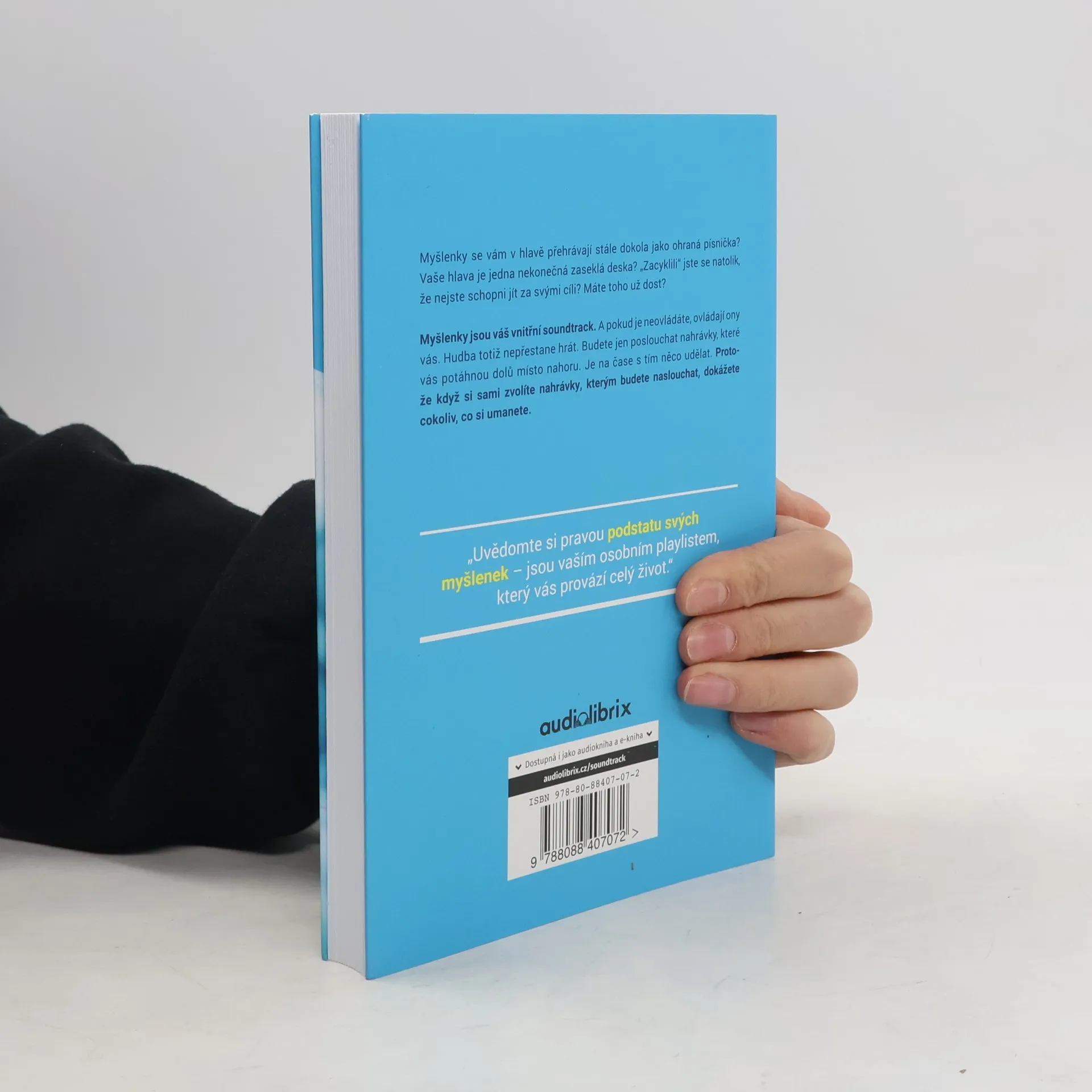Myšlenky se vám v hlavě přehrávají stále dokola jako ohraná písnička? Vaše hlava je jedna nekonečná zaseklá deska? Zacyklili jste se natolik, že nejste schopni jít za svými cíli? Máte toho už dost? Myšlenky jsou váš vnitřní soundtrack. A pokud je neovládáte, ovládají ony vás. Hudba totiž nepřestane hrát. Budete jen poslouchat nahrávky, které vás potáhnou dolů místo nahoru. Je na čase s tím něco udělat. Protože když si sami zvolíte nahrávky, kterým budete naslouchat, dokážete cokoliv, co si umanete. Uvědomte si pravou podstatu svých myšlenek jsou vaším osobním playlistem, který vás provází celý život. Zjistěte, jak z přílišného přemýšlení udělat mocný nástroj. ovládněte své myšlenky zbavte se negativních vnitřních monologů, které vám jen vysávají energii vytvořte si symboly a tlumicí techniky obraťte pokažené nahrávky ve svůj prospěch udělejte víc práce díky správným nahrávkám namixujte si ten pravý osobní playlist!