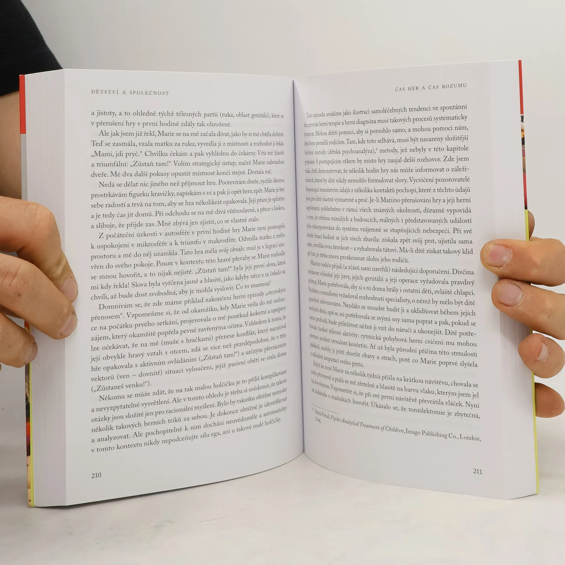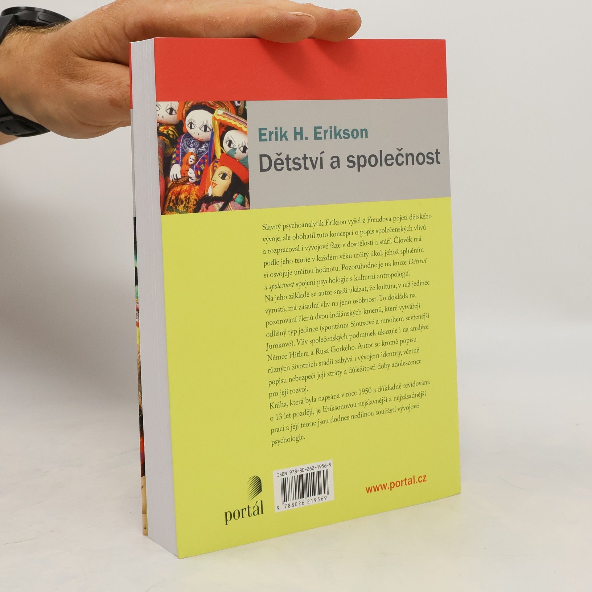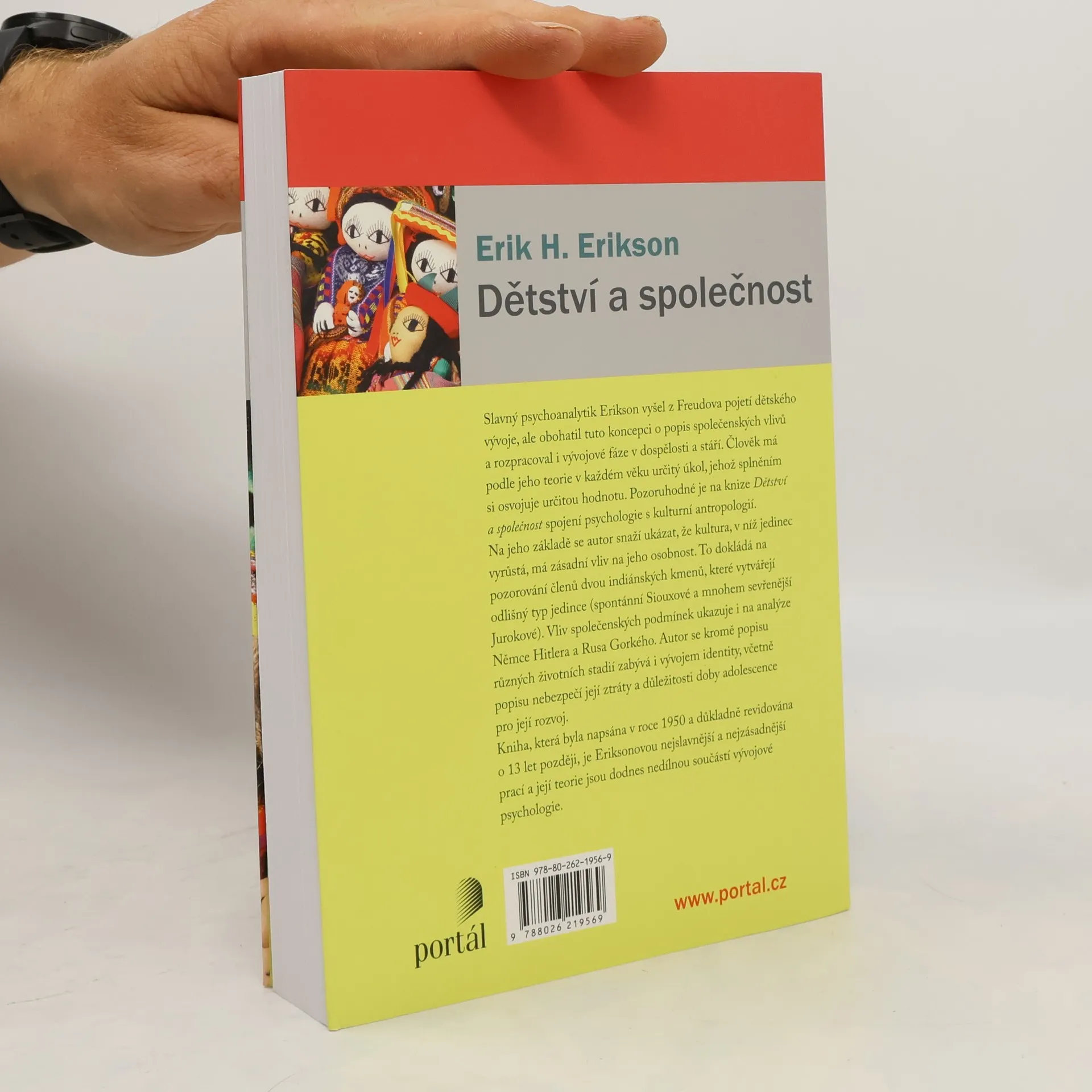 Slavný psychoanalytik Erik Erikson vyšel z Freudova pojetí dětského vývoje, ale obohatil ho o popis společenských vlivů a rozpracoval i vývojové fáze v dospělosti a stáří. Člověk má podle jeho teorie v každém věku určitý úkol, jehož splněním si osvojuje určitou hodnotu. Pozoruhodné je na knize Dětství a společnost spojení psychologie s kulturní antropologií. Na jeho základě se autor snaží ukázat, že kultura, v níž jedinec vyrůstá, má zásadní vliv na jeho osobnost. To dokládá na pozorování členů dvou indiánských kmenů, které vytvářejí odlišný typ jedince (spontánní Siouxové a mnohem sevřenější Jurokové). Vliv společenských podmínek ukazuje i na analýze Němce Hitlera a Rusa Gorkého. Autor se kromě popisu různých životních stadií zabývá i vývojem identity, včetně popisu nebezpečí její ztráty a důležitosti doby adolescence pro její rozvoj. Kniha, která byla napsána v roce 1950 a o 13 let později důkladně revidována, je Eriksonovou nejslavnější a nejzásadnější prací a její teorie jsou dodnes nedílnou součástí vývojové psychologie.