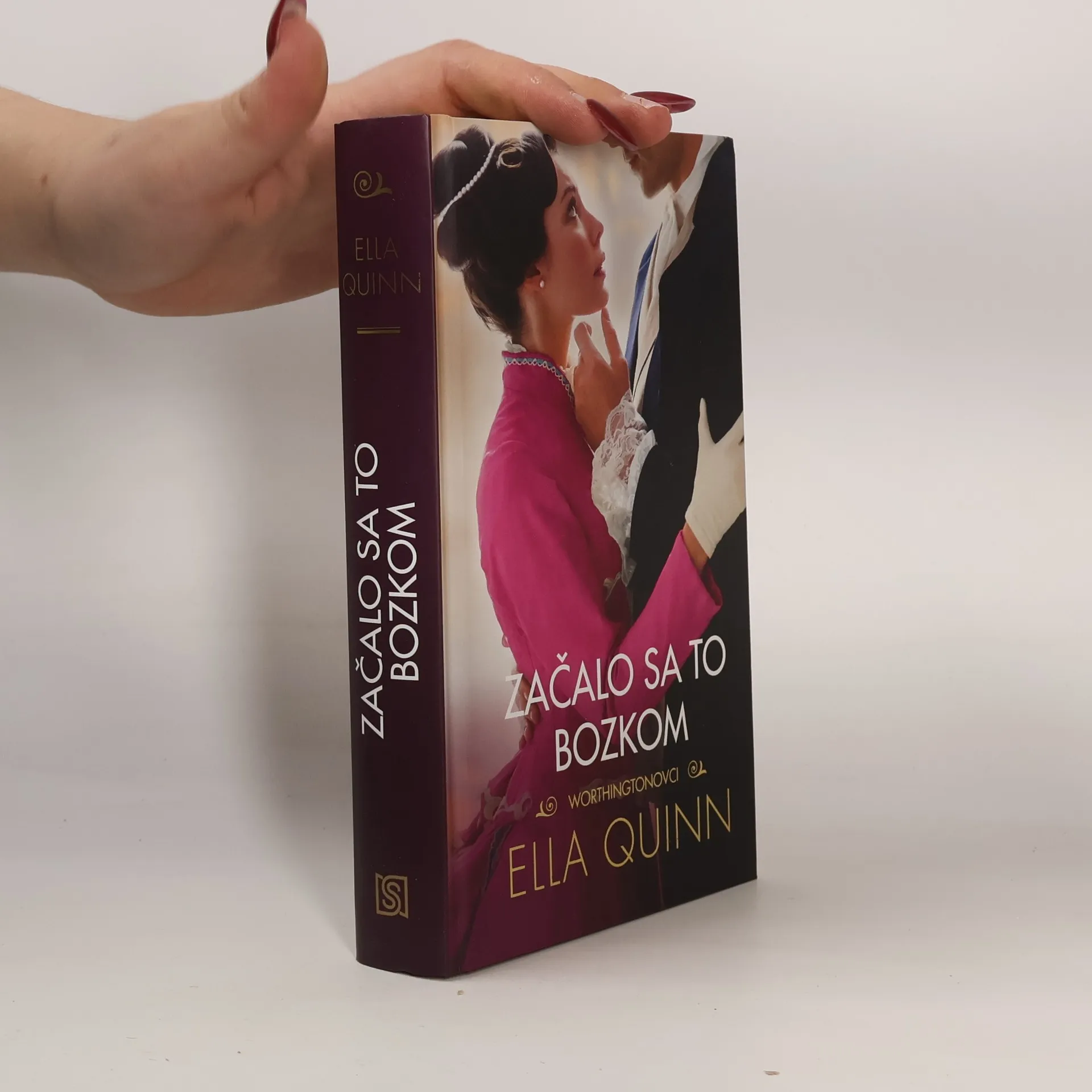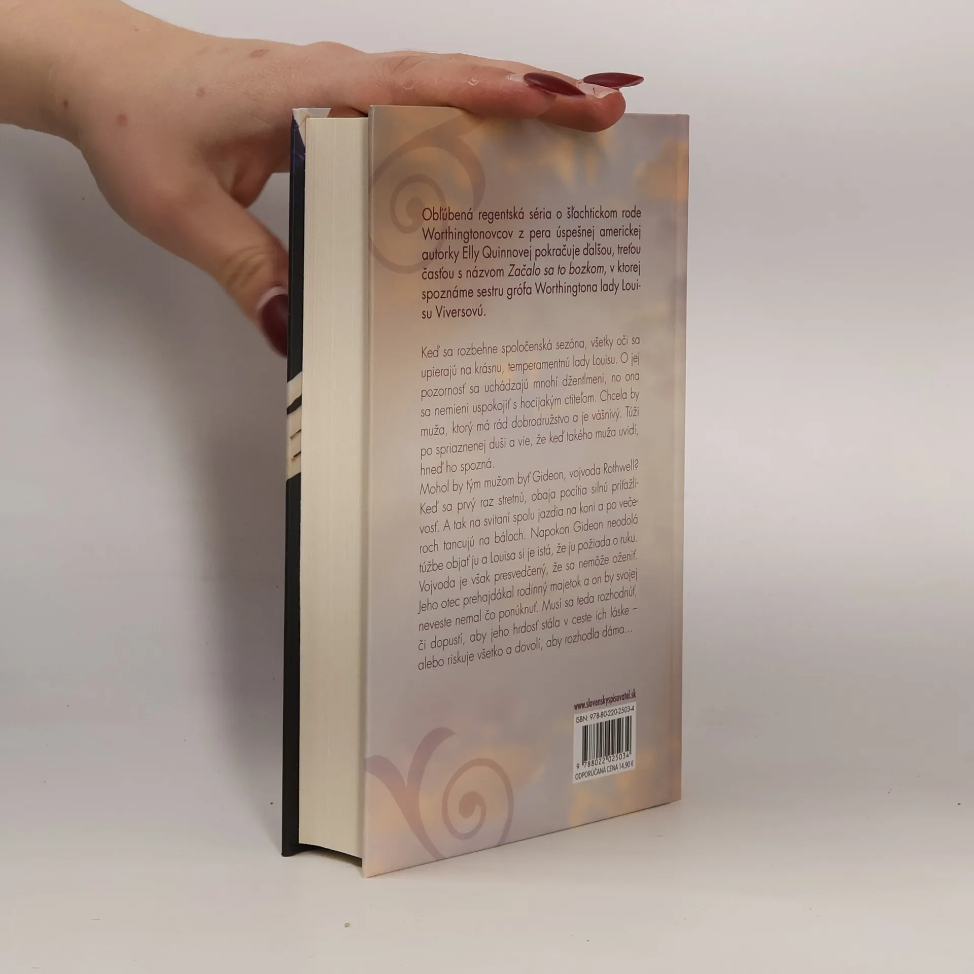 Obľúbená regentská séria o šľachtickom rode Worthingtonovcov z pera úspešnej americkej autorky Elly Quinnovej pokračuje ďalšou, treťou časťou s názvom Začalo sa to bozkom, v ktorej spoznáme sestru grófa Worthingtona lady Louisu Viversovú.Keď sa rozbehne spoločenská sezóna, všetky oči sa upierajú na krásnu, temperamentnú lady Louisu. O jej pozornosť sa uchádzajú mnohí džentlmeni, no ona sa nemieni uspokojiť s hocijakým ctiteľom. Chcela by muža, ktorý má rád dobrodružstvo a je vášnivý. Túži po spriaznenej duši a vie, že keď takého muža uvidí, hneď ho spozná.Mohol by tým mužom byť Gideon, vojvoda Rothwell? Keď sa prvý raz stretnú, obaja pocítia silnú príťažlivosť. A tak na svitaní spolu jazdia na koni a po večeroch tancujú na báloch. Napokon Gideon neodolá túžbe objať ju a Louisa si je istá, že ju požiada o ruku. Vojvoda je však presvedčený, že sa nemôže oženiť. Jeho otec prehajdákal rodinný majetok a on by svojej neveste nemal čo ponúknuť. Musí sa teda rozhodnúť, či dopustí, aby jeho hrdosť stála v ceste ich láske – alebo riskuje všetko a dovolí, aby rozhodla dáma...