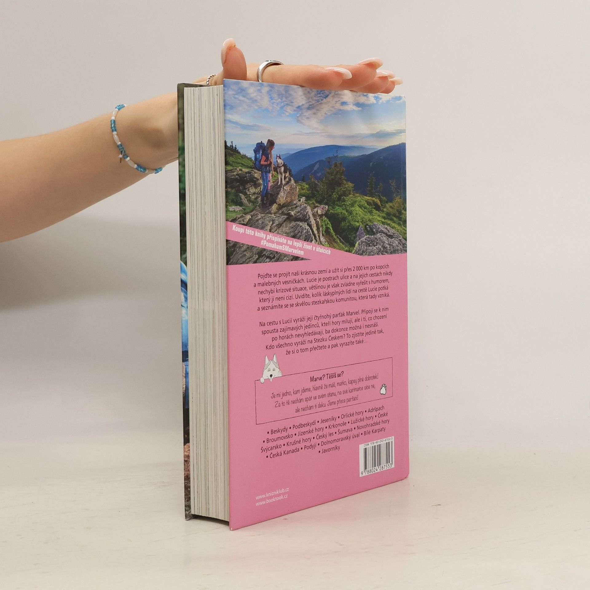 Lucie ve svých předešlých knihách popisovala krásy evropských stezek a náročnou Pacifickou hřebenovku. Tentokrát se však zaměřila na něco, co máme mnohem blíže. Na Stezku Českem.Pojďte si projít celou naši krásnou republiku a užít si přes 2000 km po českých kopcích a malebných vesničkách. Lucie je postrach ulice a na jejích cestách nikdy nechybí krizové situace, jež však většinou zvládne vyřešit s humorem, který jí není cizí. Uvidíte, kolik láskyplných lidí na cestě Lucie potká a s kým vším se seznámí.Na cestu s Lucií vyráží její největší parťák – sibiřský husky Marvel. Ale nebude jediný, kdo se k ní připojí. Nechá se zase ukecat brácha, který nesnáší šlapání do kopců? Přijedou kamarádky s dětmi? Připojí se 12letá holčička, která všem vytře zrak? Bude se partnerovi Lůcy stýskat více po Marvelovi, nebo po ní? Přijede i Marvelův tatínek? Kamarád, co miluje lezení a nesnáší chození? Kámoška s dalším huskym? Náhodní kolemjdoucí z přednášky? Guru lásky?Marvel: Je jedno, kam jdeme, hlavně že má matka kapsy plné kokin. Za to ji většinou nechám spát v mém stanu a na mé karimatce. V mém spacáku. A Honzovi se vždycky stýská více po mně.