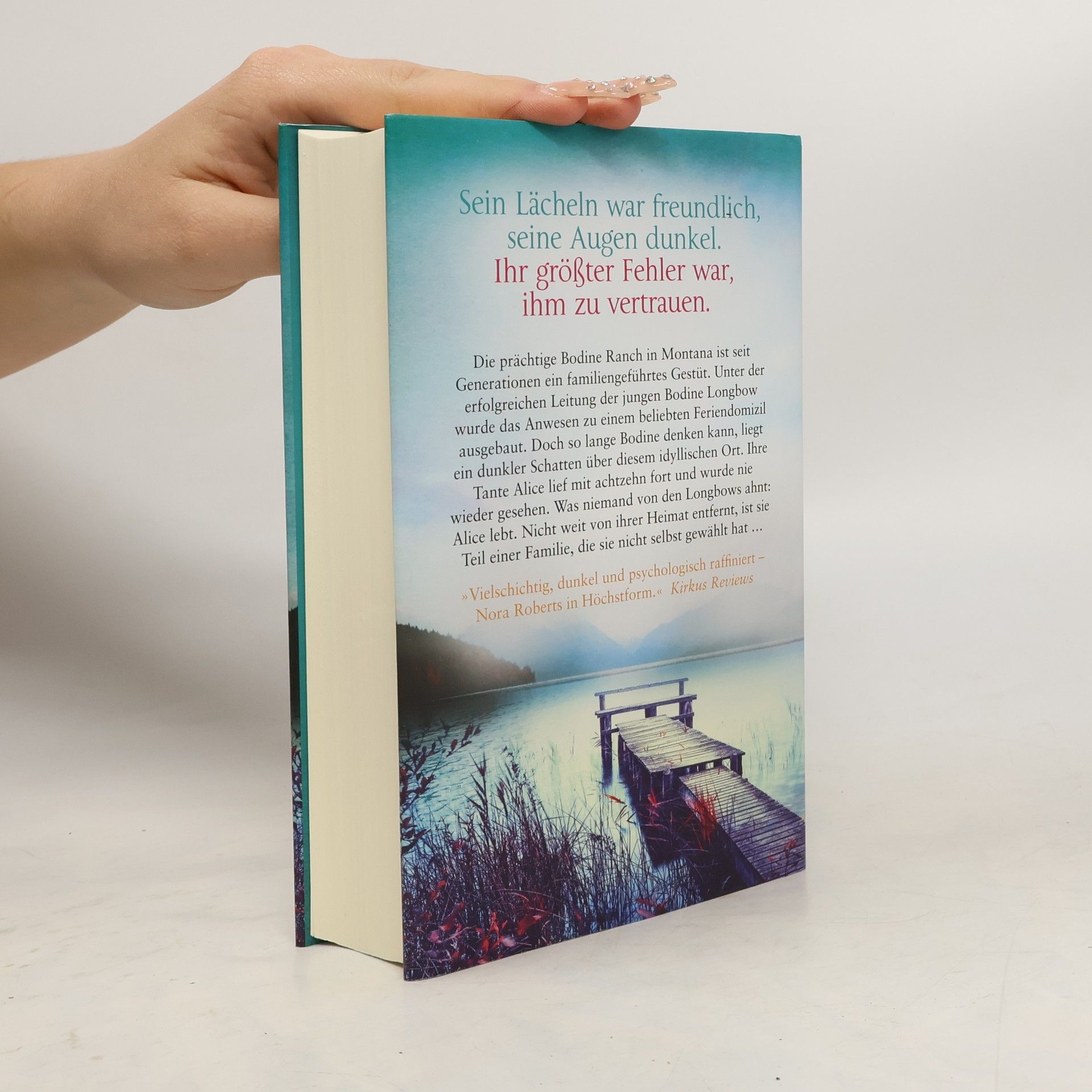 Sein Lächeln war freundlich, seine Augen dunkel. Ihr größter Fehler war, ihm zu vertrauen. Die prächtige Bodine Ranch in Montana ist seit Generationen ein familiengeführtes Gestüt. Unter der erfolgreichen Leitung der jungen Bodine Longbow wurde das Anwesen zu einem beliebten Feriendomizil ausgebaut. Doch so lange Bodine denken kann, liegt ein dunkler Schatten über diesem idyllischen Ort. Ihre Tante Alice lief mit achtzehn fort und wurde nie wieder gesehen. Was niemand von den Longbows ahnt: Alice lebt. Nicht weit von ihrer Heimat entfernt, ist sie Teil einer Familie, die sie nicht selbst gewählt hat … »Vielschichtig, dunkel und psychologisch raffiniert - Nora Roberts in Höchstform.« Kirkus Reviews