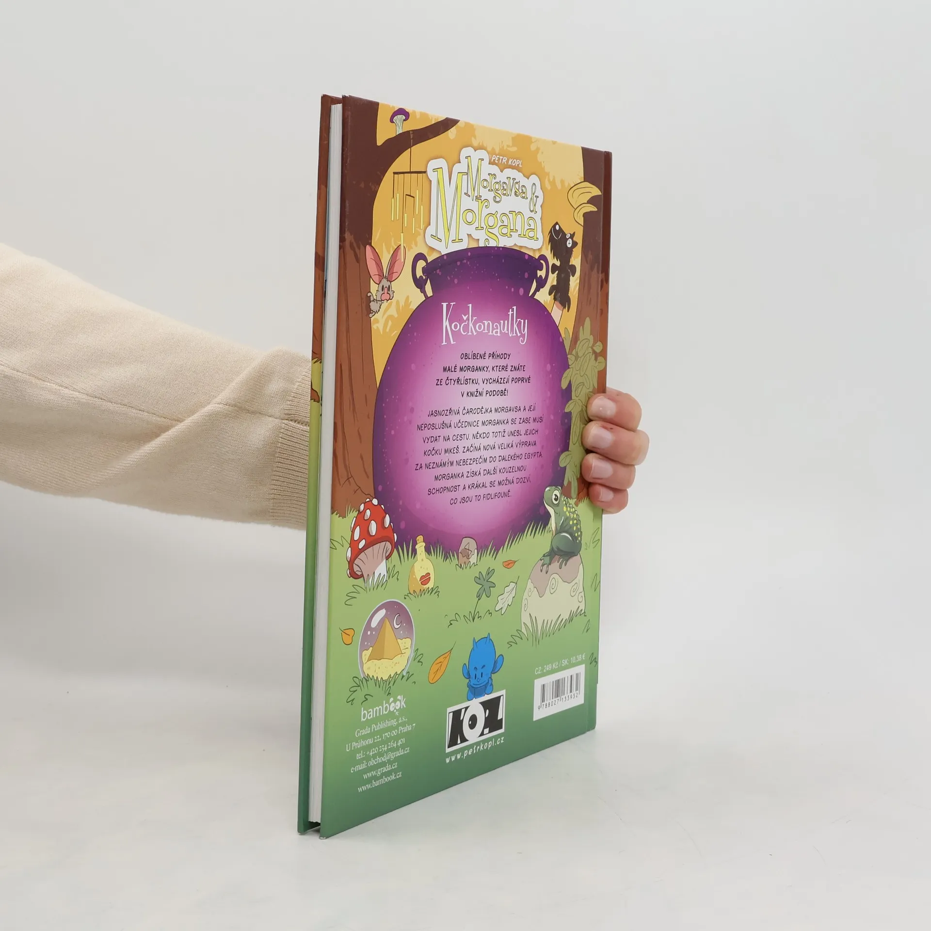 Oblíbené příhody malé Morganky, které znáte ze Čtyřlístku, vycházejí poprvé v knižní podobě! Jasnozřivá čarodějka Morgavsa a její neposlušná učednice Morganka se zase musí vydat na cestu. Někdo totiž unesl jejich kočku Mikeš. Začíná nová veliká výprava za neznámým nebezpečím do dalekého Egypta. Morganka získá další kouzelnou schopnost a Krákal se možná dozví, co jsou fidlifouně.