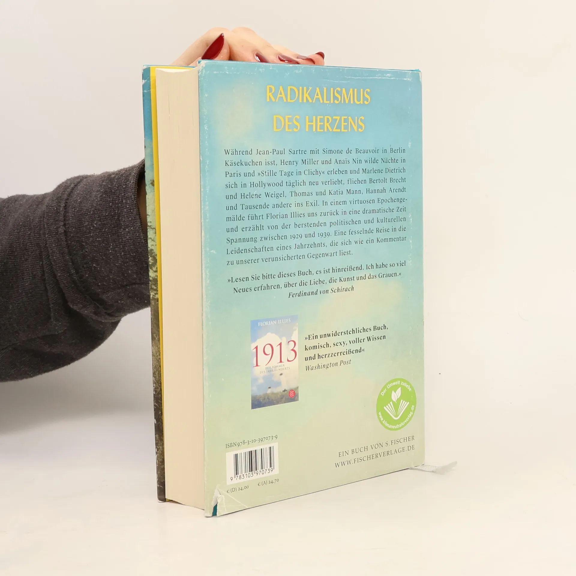 Lesen Sie bitte dieses Buch, es ist hinreißend. Ich habe so viel Neues erfahren, über die Liebe, die Kunst und das Grauen. In einem virtuosen Epochengemälde erweckt Florian Illies die dreißiger Jahre, ein Jahrzehnt voller politischer und kultureller Spannungen. Während Jean-Paul Sartre und Simone de Beauvoir in Berlin Käsekuchen genießen, erleben Henry Miller und Anaïs Nin wilde Nächte in Paris. F. Scott Fitzgerald und Ernest Hemingway stürzen sich in leidenschaftliche Affären in New York, während Bertolt Brecht und Helene Weigel ins Exil fliehen. Diese Zeit markiert den Aufstieg der Nationalsozialisten in Deutschland, die Bücher verbrennen und Gewalt gegen Juden ausüben. 1933 endet die Ära der „Goldenen Zwanziger“ abrupt. Illies führt uns zurück zu einer singulären politischen Katastrophe und erzählt von den größten Liebespaaren der Kulturgeschichte. In Berlin, Paris, im Tessin und an der Riviera stemmen sich die Helden der Zeit gegen den drohenden Untergang. Diese mitreißend erzählte Reise in die Vergangenheit wirkt wie ein Kommentar zu unserer unsicheren Gegenwart: Liebe in Zeiten des Hasses. Eine Gesellschaftsgeschichte in Zweier- und Dreierbeziehungen. Indiskret, schonungslos und aufregend. Desillusionierend und anrührend zugleich. Ein Bravourstück.