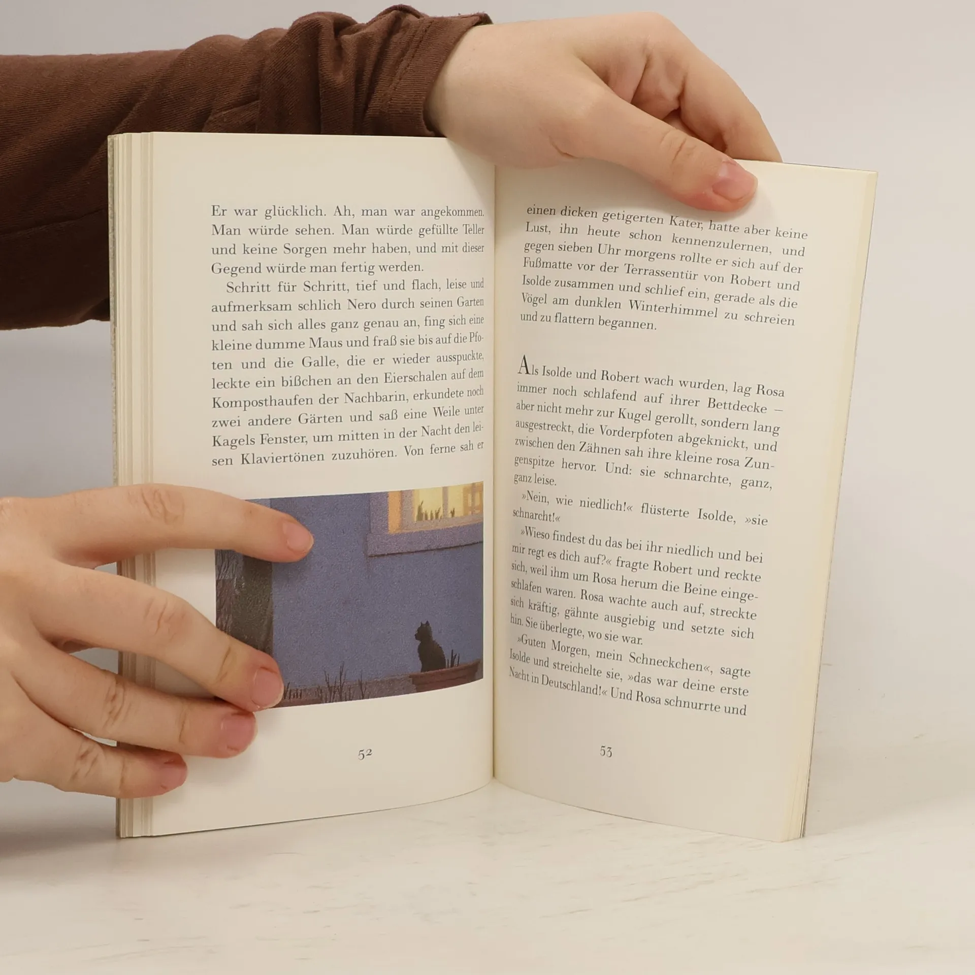 »Nero« nennen sie den kleinen Kater auf dem italienischen Bauernhof, weil er ganz schwarz ist, nur mit einer weißen Vorderpfote. Nero fürchtet sich vor nichts und niemand, nicht einmal vor Robert und Isolde, dem deutschen Ehepaar, das in den Ferien das Häuschen auf dem Hügel bewohnt. Und weil er meint, das Zeug zu einem Chef zu haben, beschließt er, den Hof zu verlassen, um mit den beiden nach Köln am Rhein zu gehen. Dort tobt das wahre Leben! Quint Buchholz hat diese Katzengeschichte mit wunderbaren farbigen Bildern versehen.