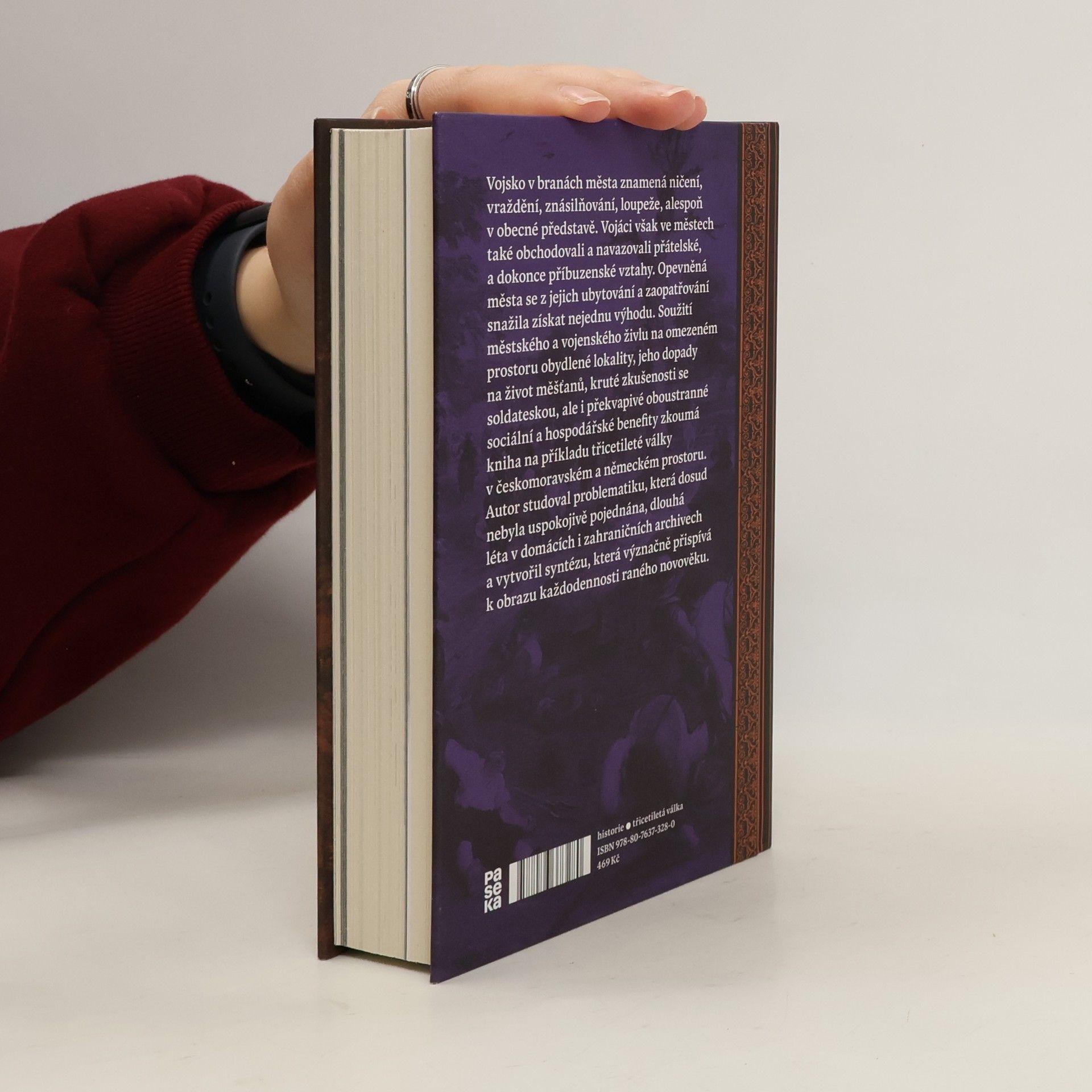 Vojsko v branách města znamená ničení, vraždění, znásilňování a loupeže, alespoň v obecné představě. Vojáci však ve městech také obchodovali a navazovali přátelské, a dokonce příbuzenské vztahy. Opevněná města se z jejich ubytovávání a zaopatřování snažila získat nejednu výhodu. Soužití městského a vojenského živlu na omezeném území obydlené lokality, jeho dopady na život měšťanů, kruté zkušenosti se soldateskou, ale i překvapivé oboustranné sociální a hospodářské benefity zkoumá kniha na příkladu třicetileté války v českomoravském a německém prostoru. Autor studoval problematiku dlouhá léta v domácích i zahraničních archivech a vytvořil monografii, která význačně přispívá k obrazu každodennosti raného novověku.