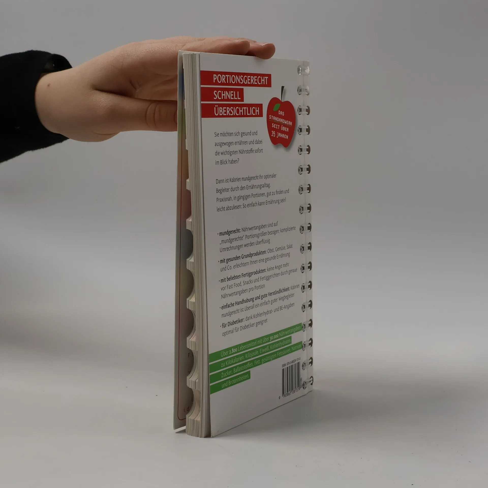 Über 2.800 Lebensmittel mit über 30.000 Nährwertangaben, portionsgerecht angegeben und unkompliziert in der Handhabung – so führt „Kalorien mundgerecht“ Millionen Menschen seit Jahrzehnten durch den Ernährungsalltag. Neben Kilokalorien, Kilojoule, Eiweiß, Kohlenhydraten, Ballaststoffen, Fett und Broteinheiten zu jedem Lebensmittel, ist die 14., komplett überarbeitete Auflage um die Angaben zu Zucker, gesättigte Fettsäuren und Natrium ergänzt worden. In übersichtliche Kapitel geordnet und mithilfe eines ausführlichen Registers lassen sich sämtliche Lebensmittel leicht finden. Dank einer optimalen Tabellenstruktur sind die Nährwertangaben gut ablesbar. Gängige Fertiggerichte bekannter Marken finden sich ebenso in der Tabelle wie Grundprodukte oder selbst zubereitete Gerichte nach üblichen Rezepturen. Sämtliche Nährwertangaben sind in mundgerechter Form, d. h. in Stück oder Portionen angegeben. Optimal geeignet für Diabetiker (mit Broteinheiten bzw. Kohlenhydrat-Portionen). Aus dem Inhalt: - Milch und Milchprodukte - Gemüse und Obst - Getreide und Getreideprodukte - Fleisch, Eier und ihre Produkte - Fette und Öle - Desserts, Eis, Schokolade und Süßwaren - Saucen Fertiggerichte, Fixprodukte, Snacks - Getränke