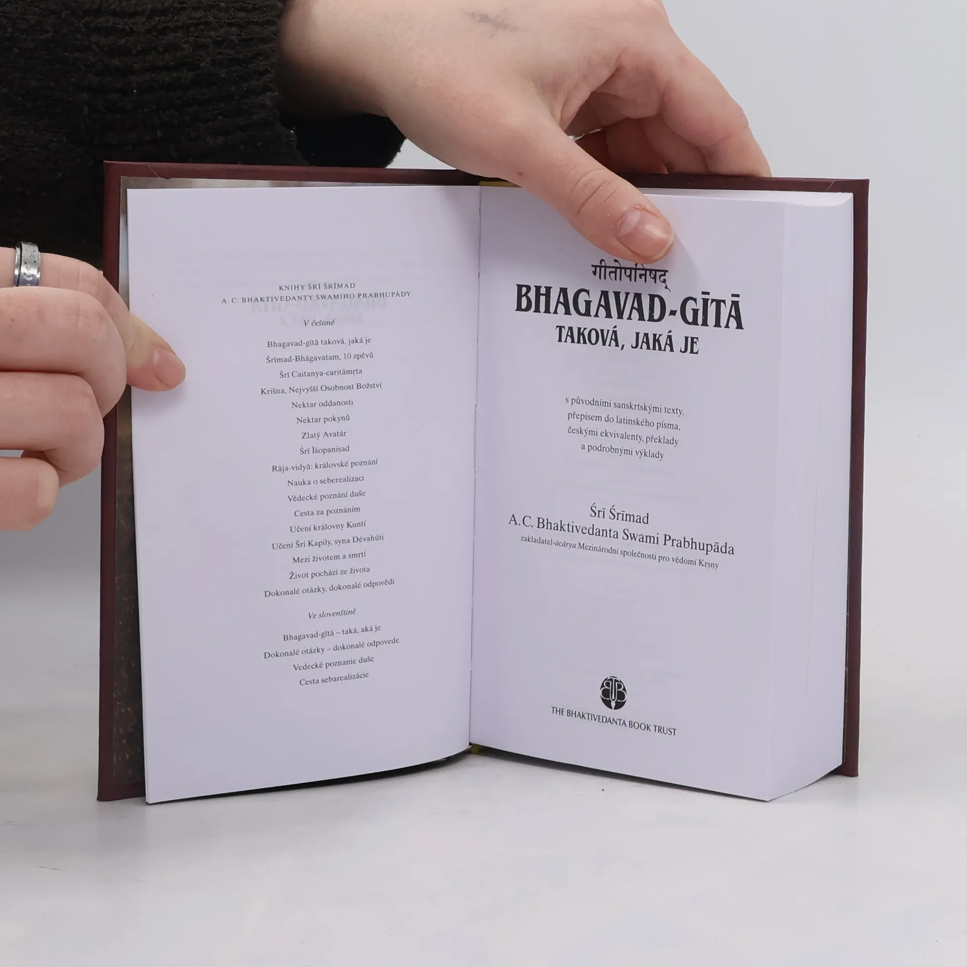 Bhagavad-gítá je známá po celém světě jako drahokam duchovní moudrosti Indie. Verše staré přes 5000 let doplněné komentáři Šríly Prabhupády plně odhalují vědu o seberealizaci a vyjevují tajemství karmy, jógy a reinkarnaci. Předkládá filozofický výklad lidské podstaty.