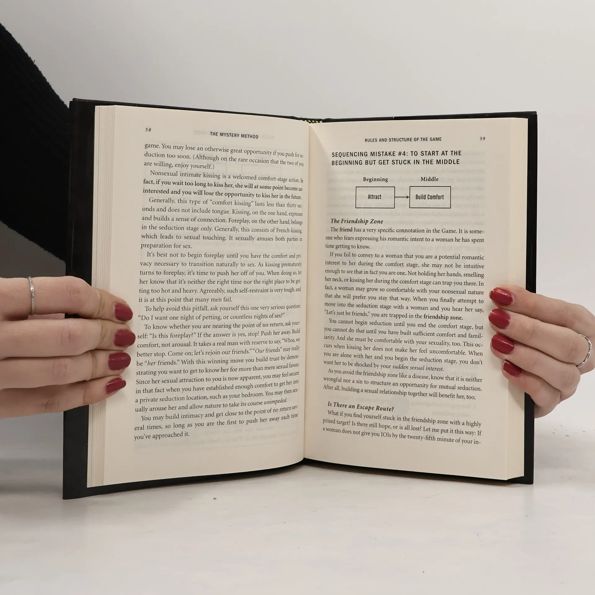 “One of the most admired men in the world of seduction” (The New York Times) teaches average guys how to approach, attract and begin intimate relationships with beautiful women For every man who always wondered why some guys have all the luck, Mystery, considered by many to be the world’s greatest pickup artist, finally reveals his secrets for finding and forming relationships with some of the world’s most beautiful women. Mystery gained mainstream attention for his role in Neil Strauss’s New York Times bestselling exposé, The Game. Now he has written the definitive handbook on the art of the pickup. He developed his unique method over years of observing social dynamics and interacting with women in clubs to learn how to overcome the guard shield that many women use to deflect come-ons from "average frustrated chumps." The Mystery Method: How to Get Beautiful Women Into Bed shares tips such as: *Give more attention to her less attractive friend at first, so your target will get jealous and try to win your attention. *Always approach a target within 3 seconds of noticing her. If a woman senses your hesitation, her perception of your value will be lower. *Don't be picky. Approach as many groups of people in a bar as you can and entertain them with fun conversation. As you move about the room, positive perception of you will grow. Now it's easy to meet anyone you want. *Smile. Guys who don't get laid, don't smile.