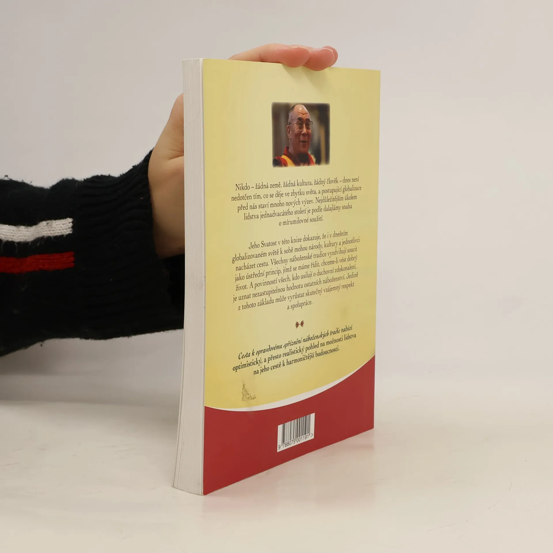 Nikdo – žádná země, žádná kultura, žádný člověk – dnes není nedotčen tím, co se děje ve zbytku světa, a postupující globalizace před nás staví mnoho nových výzev. Nejdůležitějším úkolem lidstva jednadvacátého století je podle dalajlámy snaha o mírumilovné soužití. Jeho Svatost v této knize dokazuje, že i v dnešním globalizovaném světě k sobě mohou národy, kultury a jednotlivci nacházet cestu. Všechny náboženské tradice vyzdvihují soucit jako ústřední princip, jímž se máme řídit, chceme-li vést dobrý život. A povinností všech, kdo usilují o duchovní zdokonalení, je uznat nezastupitelnou hodnotu ostatních náboženství. Jedině z tohoto základu může vyrůstat skutečný vzájemný respekt a spolupráce. Cesta k opravdovému spříznění náboženských tradic nabízí optimistický, a přesto realistický pohled na možnosti lidstva na jeho cestě k harmoničtější budoucnosti.