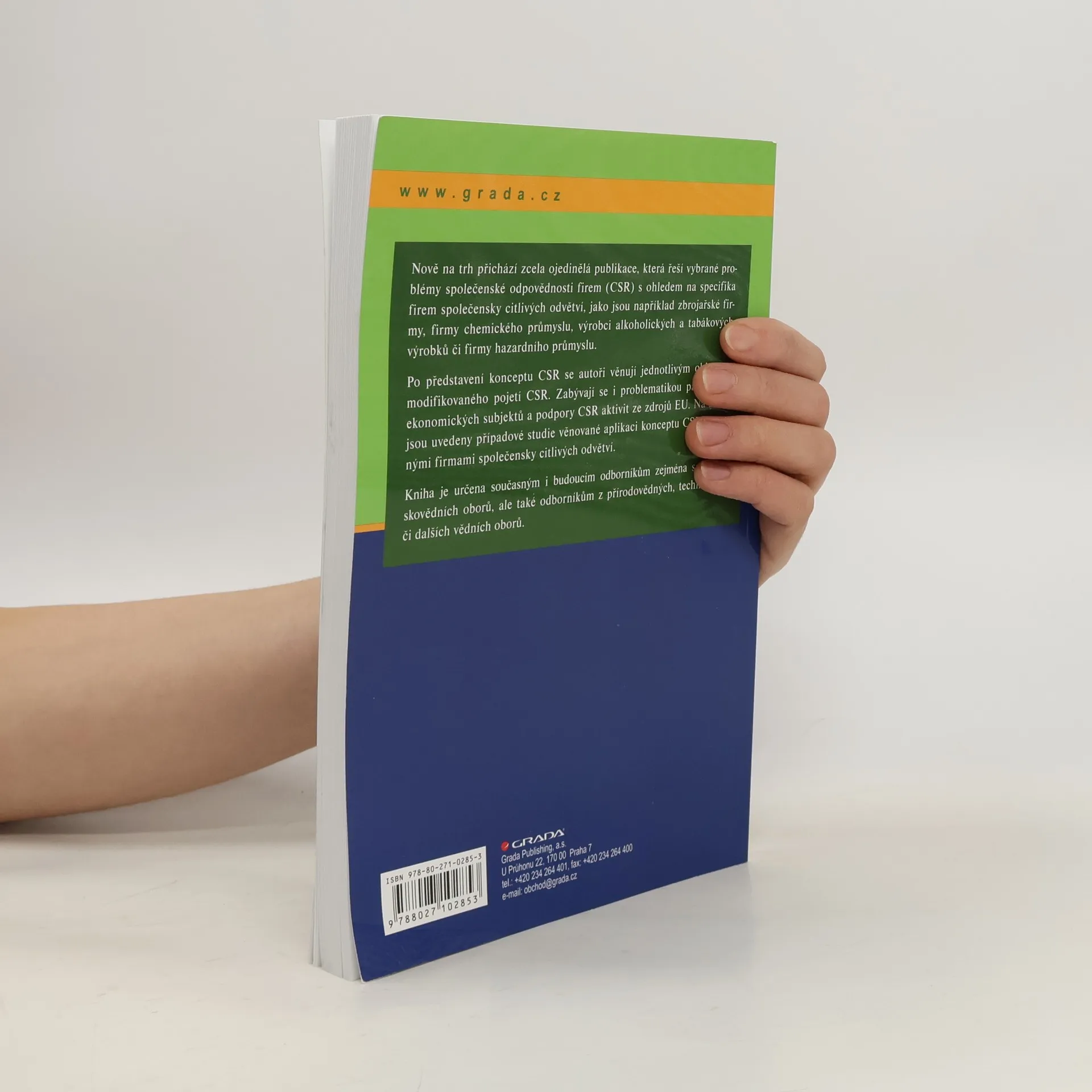 Nově na trh přichází zcela ojedinělá publikace, která řeší vybrané problémy společenské odpovědnosti firem (CSR) s ohledem na specifika firem společensky citlivých odvětví, jako jsou například zbrojařské firmy, firmy chemického průmyslu, výrobci alkoholických a tabákových výrobků či firmy hazardního průmyslu. Po představení konceptu CSR se autoři věnují jednotlivým oblastem modifikovaného pojetí CSR. Zabývají se i problematikou partnerství ekonomických subjektů a podpory CSR aktivit ze zdrojů EU. Na závěr jsou uvedeny případové studie věnované aplikaci konceptu CSR vybranými firmami společensky citlivých odvětví. Kniha je určena současným i budoucím odborníkům zejména společenskovědních oborů, ale také odborníkům z přírodovědných, technických či dalších vědních oborů.