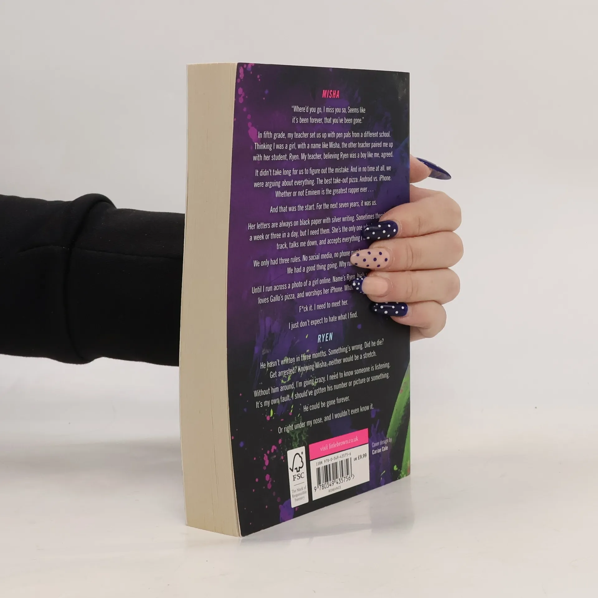 Misha I can’t help but smile at the words in her letter. She misses me. In fifth grade, my teacher set us up with pen pals from a different school. Thinking I was a girl, with a name like Misha, the other teacher paired me up with her student, Ryen. My teacher, believing Ryen was a boy like me, agreed. It didn’t take long for us to figure out the mistake. And in no time at all, we were arguing about everything. The best take-out pizza. Android vs. iPhone. Whether or not Eminem is the greatest rapper ever… And that was the start. For the next seven years, it was us. Her letters are always on black paper with silver writing. Sometimes there’s one a week or three in a day, but I need them. She’s the only one who keeps me on track, talks me down, and accepts everything I am. We only had three rules. No social media, no phone numbers, no pictures. We had a good thing going. Why ruin it? Until I run across a photo of a girl online. Name’s Ryen, loves Gallo’s pizza, and worships her iPhone. What are the chances? F*ck it. I need to meet her. I just don’t expect to hate what I find. Ryen He hasn’t written in three months. Something’s wrong. Did he die? Get arrested? Knowing Misha, neither would be a stretch. Without him around, I’m going crazy. I need to know someone is listening. It’s my own fault. I should've gotten his number or picture or something. He could be gone forever. Or right under my nose, and I wouldn’t even know it.