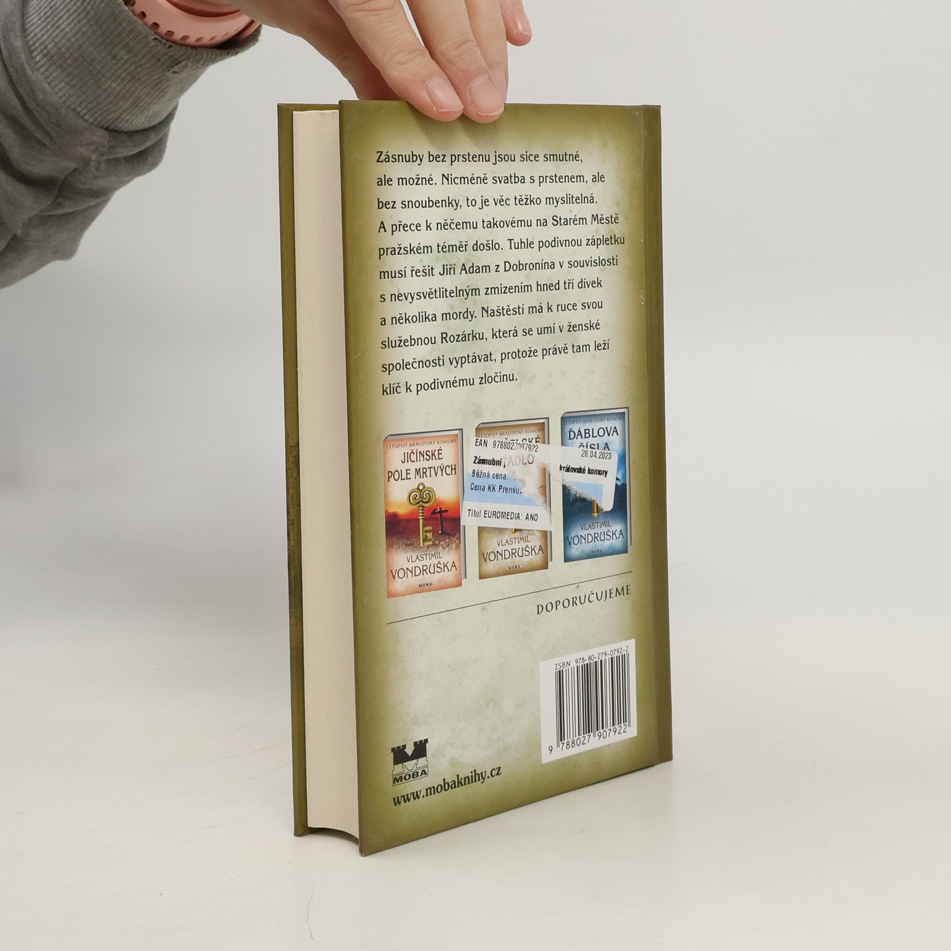 Zásnuby bez prstenu jsou sice smutné, ale možné. Nicméně zásnuby s prstenem, ale bez snoubenky, to je věc těžko myslitelná. A přece k ní na Starém Městě pražském došlo. Tuhle podivnou zápletku musí řešit Jiří Adam z Dobronína v souvislosti s nevysvětlitelným mordem. Naštěstí má k ruce svou služebnou Rozárku, která se umí v ženské společnosti vyptávat, protože právě tam leží klíč k podivnému zločinu…