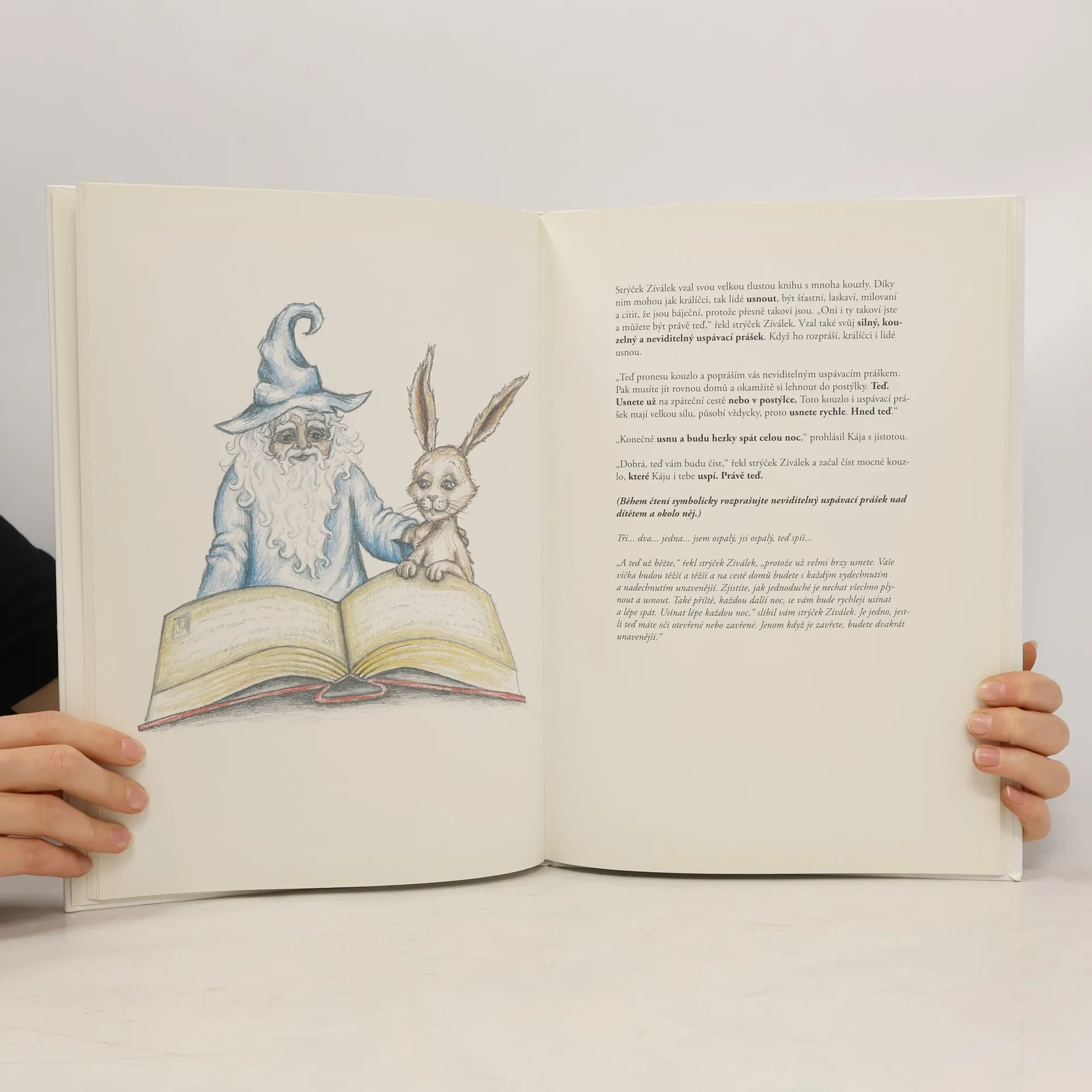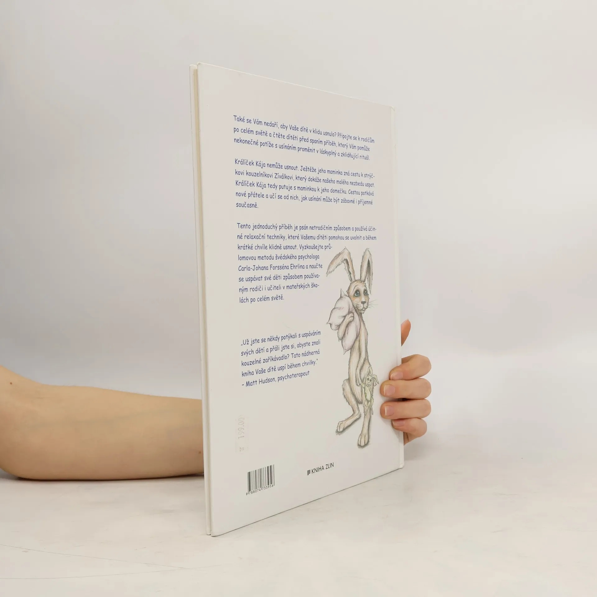 Máte potíže s usínáním vašeho dítěte? Připojte se k rodičům po celém světě a vyzkoušejte čtení před spaním jako láskyplný a zklidňující rituál. Příběh o králíčkovi Kájovi, který nemůže usnout, vás zavede na cestu k strýčkovi kouzelníkovi Zíválkovi, jenž umí děti uspat. Během cesty Kája potkává nové přátele a učí se, jak může být usínání zábavné a příjemné. Tento jednoduchý příběh využívá netradiční přístup a relaxační techniky, které pomohou vašemu dítěti se uvolnit a rychle usnout. Objevte průlomovou metodu švédského psychologa Carla-Johana Forsséna Ehrlina, kterou používají rodiče a učitelé v mateřských školách po celém světě. „Unavení rodiče planety Země – toto je to, na co jste čekali… Pokud ještě nemáte výtisk, měli byste si ho co nejrychleji opatřit.“ – Metro, Velká Británie „Tato kouzelná kniha Vaše dítě opravdu uspí během několika minut.“ – New York Post, USA „Radost rodičů“ – USA Today, USA „Už jste se někdy potýkali s uspáváním svých dětí a přáli jste si znát kouzelné zaříkávadlo? Tato kouzelná kniha Vaše dítě uspí během chvilky.“ – Matt Hudson, psychoterapeut „Příběh o Králíčkovi, který chtěl usnout, používejte, když se dějí vzrušující věci nebo když dítěti něco brání usnout.“ – Mikael Odhage, psycholog