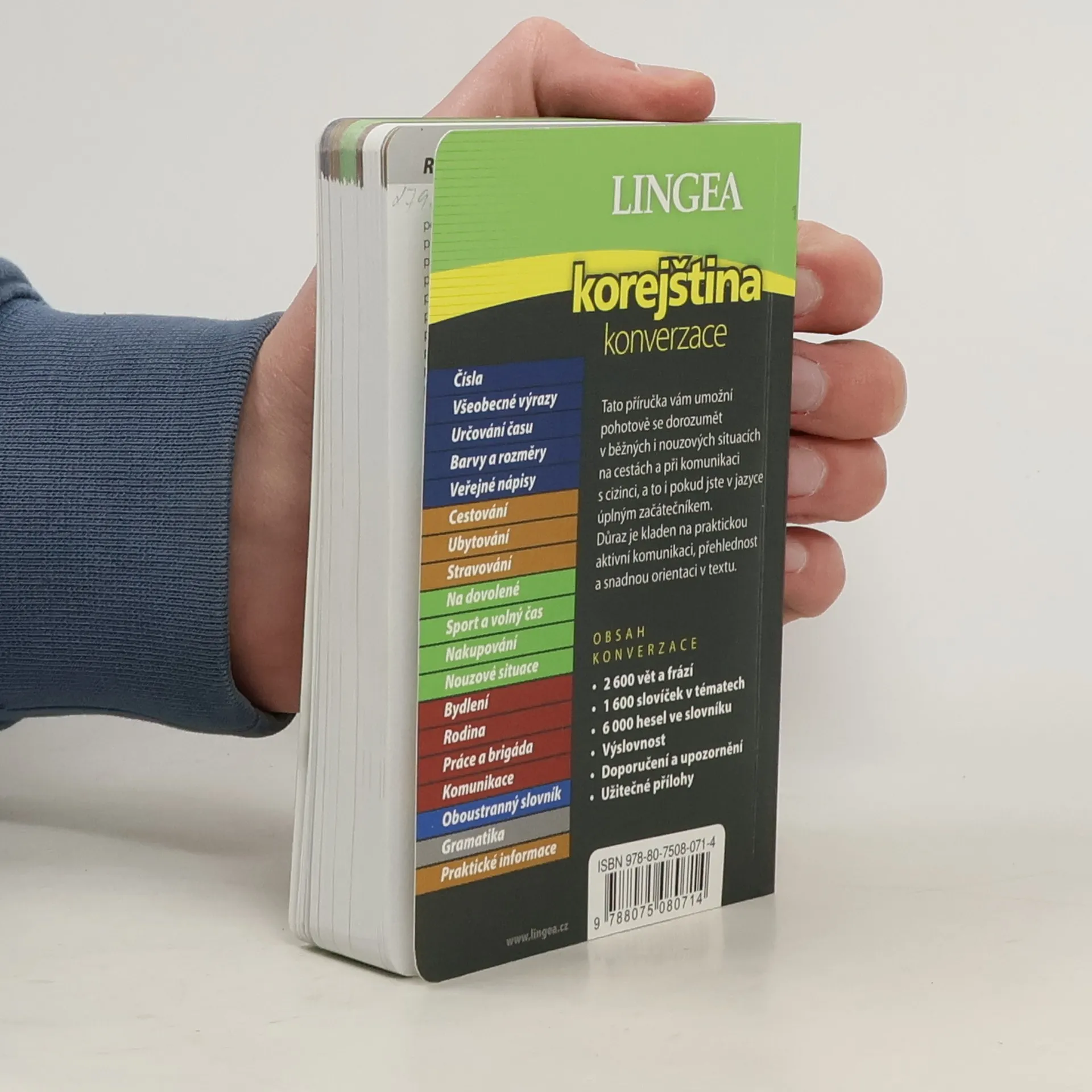 Exotická Korea se svými starobylými stavbami i panenskou přírodou láká stále více cestovatelů. Pokud se sem vydáte s naší konverzací, záhy zjistíte, že porozumět tajuplným znakům ve skutečnosti není tak složité. Díky této příručce se zvládnete dorozumět v nejrůznějších situacích a vaše cestování bude o to radostnější. 2 600 vět a frází, 1 600 slovíček v tématech, 6 000 hesel ve slovníku (pouze v knize). Doporučení a upozornění. Přepis výslovnosti všech frází. 16 stran gramatiky. 14 stran praktických informací o zemi.