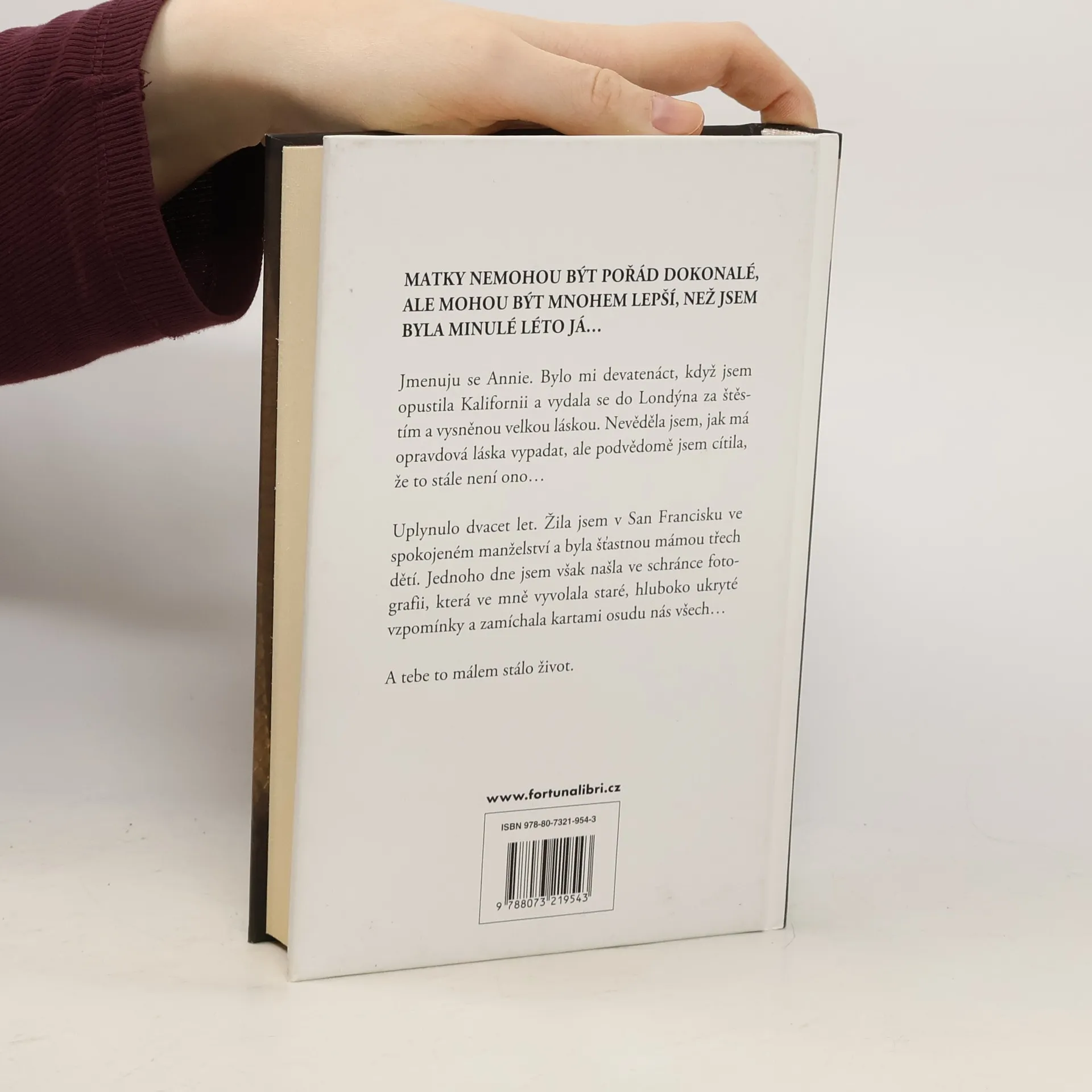 MATKY NEMOHOU BÝT POŘÁD DOKONALÉ, ALE MOHOU BÝT MNOHEM LEPŠÍ, NEŽ JSEM BYLA MINULÉ LÉTO JÁ… Jmenuju se Annie. Bylo mi devatenáct, když jsem opustila Kalifornii a vydala se do Londýna za štěstím a vysněnou velkou láskou. Nevěděla jsem, jak má opravdová láska vypadat, ale podvědomě jsem cítila, že to stále není ono… Uplynulo dvacet let. Žila jsem v San Francisku ve spokojeném manželství a byla šťastnou mámou třech dětí. Jednoho dne jsem však našla ve schránce fotografii, která ve mně vyvolala staré, hluboko ukryté vzpomínky a zamíchala kartami osudu nás všech… A tebe to málem stálo život.
