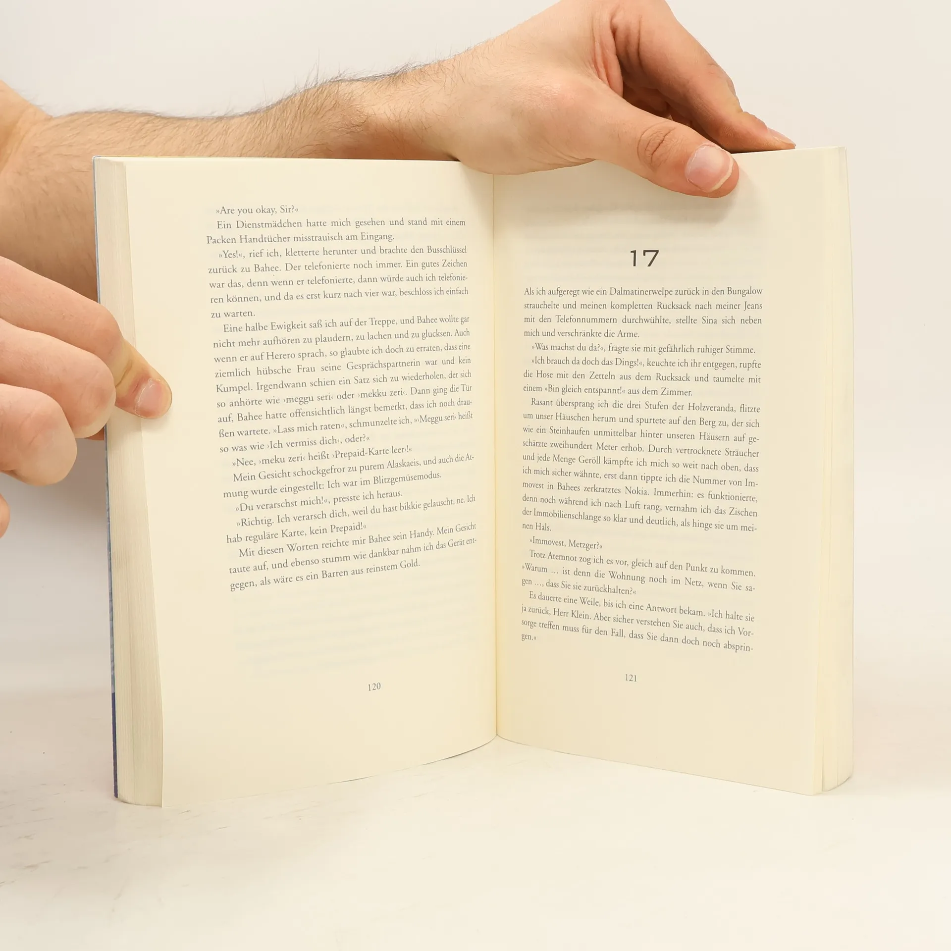 Sitzreihe 12 war die letzte, die zwischen Tortellini und Hühnchen wählen durfte. Ich saß in Reihe 13. Schon auf dem Hinflug hätte mir klar sein können, dass der Jahresurlaub zum Albtraum wird. Matze sieht die Schuld für sein Dilemma bei seiner Freundin Sina. Während er die neue Eigentumswohnung klargemacht hat, buchte sie einfach 'irgendwas' – eine zweiwöchige Gruppenreise durch Namibia. Ein Land, in dem selbst eine hüftkranke Schildkröte schneller ist als das Internet. Täglich wird er in einen Kleinbus voller skurriler Mitreisender gesperrt, während er sich durch österreichische Schlager über afrikanische Schotterpisten rütteln lässt. Statt auf Mallorca ein Bier zu genießen, kämpft er bei minus zwei Grad in einem lächerlichen Wanderhut durch die Dünen der Kalahari. Als ihm klar wird, dass die Wohnung an andere Käufer geht, wenn er nicht sofort die Reservierungsgebühr überweist, hat er gleich drei neue Probleme: Das nächste Internetcafé ist fünfhundert Kilometer entfernt, sein Handy ist leer und das einzige Ladegerät gehört einem österreichischen Mitreisenden. Er drückt seine Nase ans Busfenster und blickt hinaus ins weite Land. Die Namibier winken und lachen. Klar lachen sie, sie sind ja frei. Wir nicht. Wir sind die in Blech gepackte Rache für die deutsche Kolonialzeit.