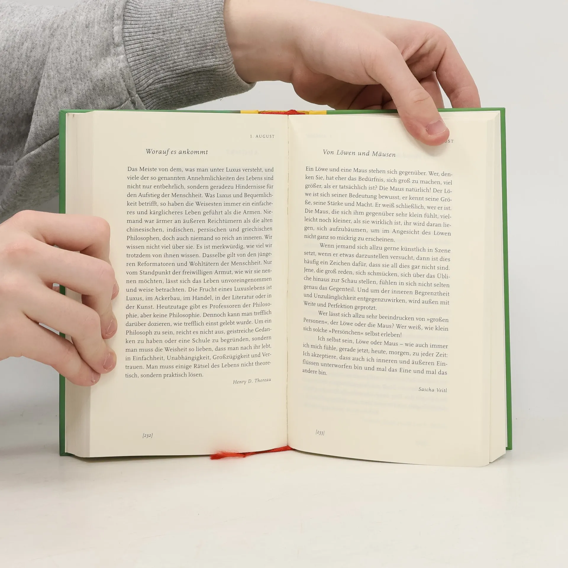 Manchmal genügen drei Minuten am Tag, um sich ein Lächeln schenken zu lassen, mit dem der Alltag schöner wird. Überraschende Geschichten vom Glück sind es, die für einen Moment den wohltuenden Abstand schaffen, aus dem das Leben neu in den Blick kommt. Namhafte Autorinnen und Autoren sowie Dichter und Meister des Lebens aus der Weltliteratur helfen, jeden Tag ein Stück vom Glück auch dort zu suchen, wo man es nicht vermuten würde - und es zu erkennen, wenn es einem begegnet. Die Monatsthemen: Mit den Augen des Herzens - Alles hat seine Zeit - Die scheinbar unscheinbaren Augenblicke - Spuren des Glücks - Die richtigen Schlüssel kennen - Was zählt, was trägt, was bleibt - Dem Alltag eine Seele geben - Was ist das eigentlich: „Glück“? - Der Himmel ist ganz nah - Hat alles einen Sinn? - Dunkelstunden nicht überspringen - Offen für alles, was kommt. Mit Texten von: Phil Bosmans, Gautama Buddha, Wilhelm Busch, Dalai Lama, Fjodor M. Dostojewski, Theodor Fontane, Khalil Gibran, Brüder Grimm, Anselm Grün, Rainer Haak, Hermann Hesse, Heinrich von Kleist, Anthony de Mello, Rainer Maria Rilke, Andrea Schwarz, Leo Tolstoi u. v. a.