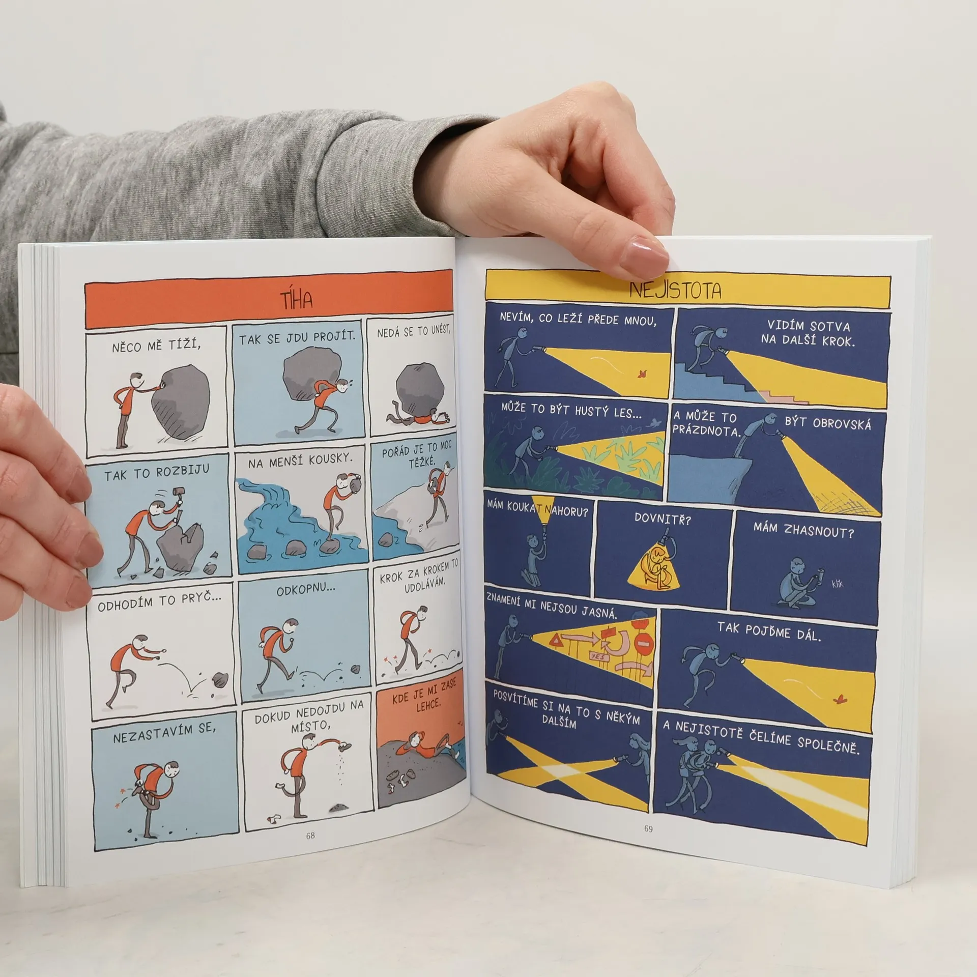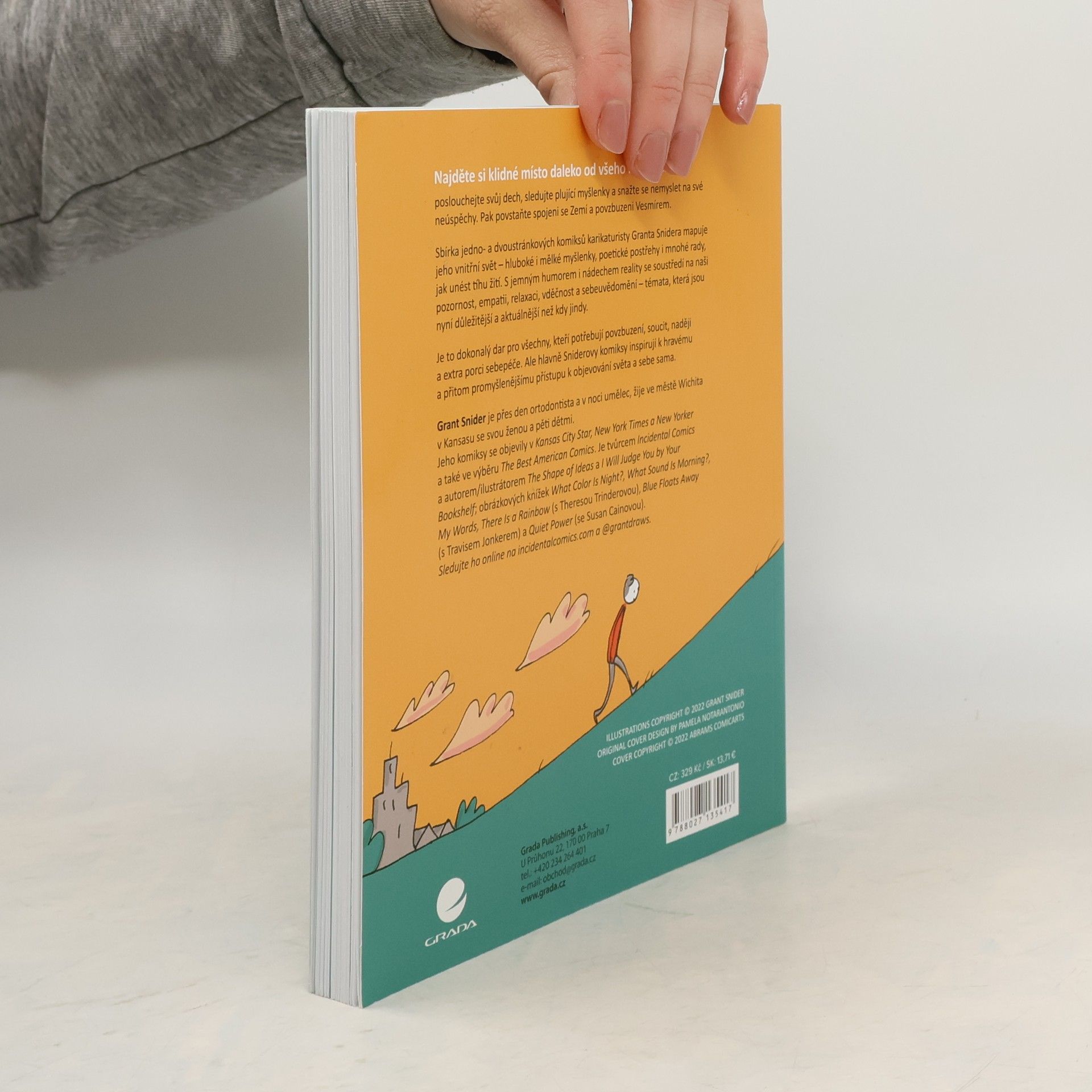 Sbírka jedno- a dvoustránkových komiksů karikaturisty Granta Snidera mapuje jeho vnitřní svět – hluboké i mělké myšlenky, poetické postřehy i mnohé rady, jak unést tíhu žití. S jemným humorem i nádechem reality se soustředí na naši pozornost, empatii, relaxaci, vděčnost a sebeuvědomění – témata, která jsou nyní důležitější a aktuálnější než kdy jindy.Je to dokonalý dárek pro všechny, kteří potřebují povzbuzení, soucit, naději a extra porci sebe-péče.Ale hlavně, Sniderovy komiksy inspirují k hravému, přitom promyšlenějšímu přístupu k objevování světa a sebe sama.Najděte si klidné místo daleko od všeho rozptýlení,poslouchejte svůj dech, sledujte plující myšlenky a snažte se nemyslet na své neúspěchy. Pak povstaňte, spojeni se Zemí a povzbuzeni Vesmírem.