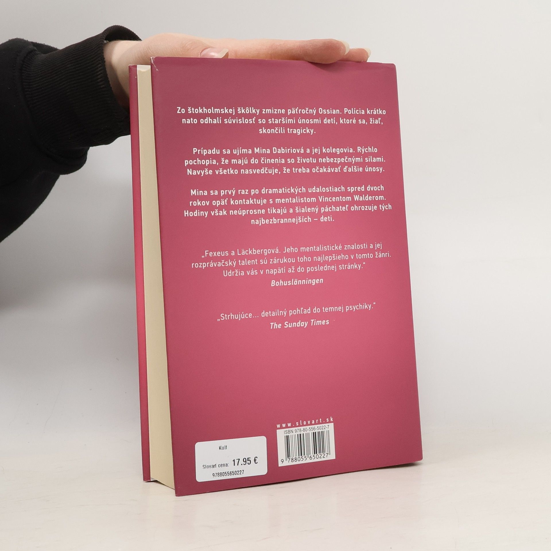 Pokračovanie krimisérie s Minou Dabiriovou a Vincentom Walderom. Zo štokholmskej škôlky zmizne päťročný Ossian. Polícia krátko nato odhalí súvislosť so staršími únosmi detí, ktoré sa, žiaľ, skončili tragicky. Prípadu sa ujíma Mina Dabiriová a jej kolegovia. Rýchlo pochopia, že majú do činenia so životu nebezpečnými silami. Navyše všetko nasvedčuje tomu, že treba očakávať ďalšie únosy. Mina sa prvý raz po dramatických udalostiach spred dvoch rokov opäť kontaktuje s mentalistom Vincentom Walderom. Čas však neúprosne beží a šialený páchateľ ohrozuje tých najbezbrannejších – deti.