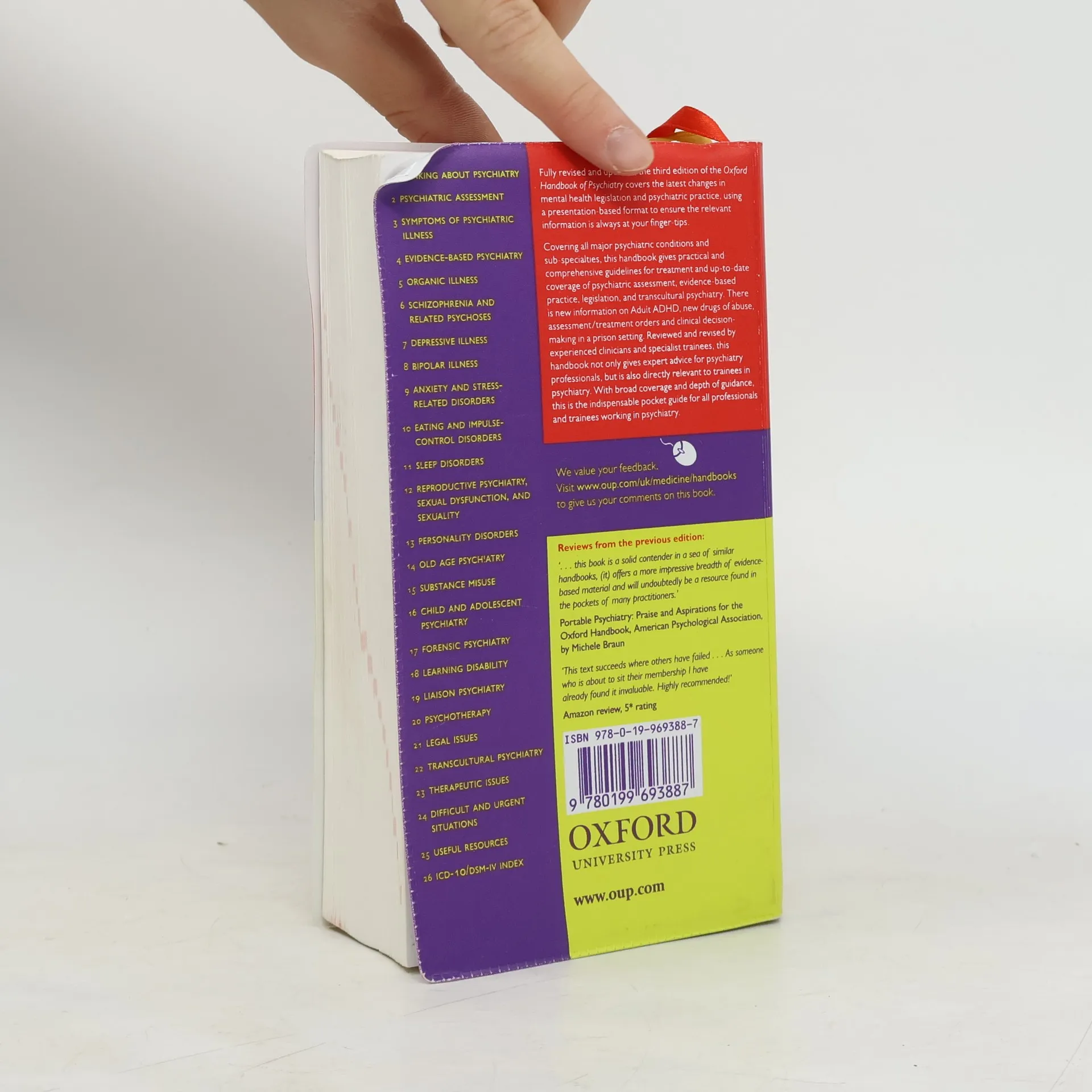 This handbook provides portable reassurance to doctors beginning psychiatry. There is helpful advice for the management of difficult and urgent situations, and the text is peppered with clinical observations on the practice of clinical psychiatry and guidance based upon the experience of the authors.