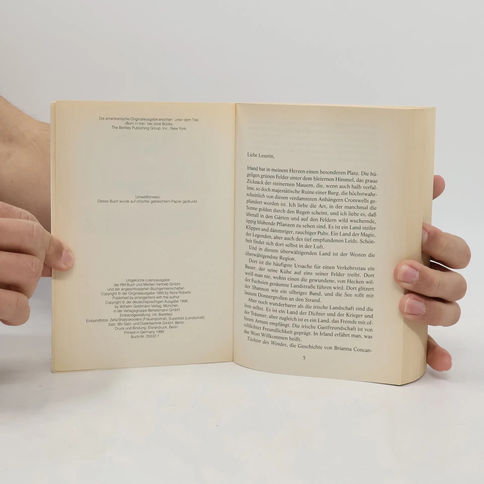 Als die eisigen Winterstürme über Irland hinwegtosen, quartiert sich überraschend ein Gast in der kleinen Pension von Brianna Concannon ein. Grayson Thane, ein amerikanischer Schriftsteller, will den Winter in aller Einsamkeit verbringen. Noch ahnt er nicht, daß manchmal aus dem Eis ein Feuer geboren wird. Nach „Töchter des Feuers“ nun der zweite Band der großen Irland-Trilogie.