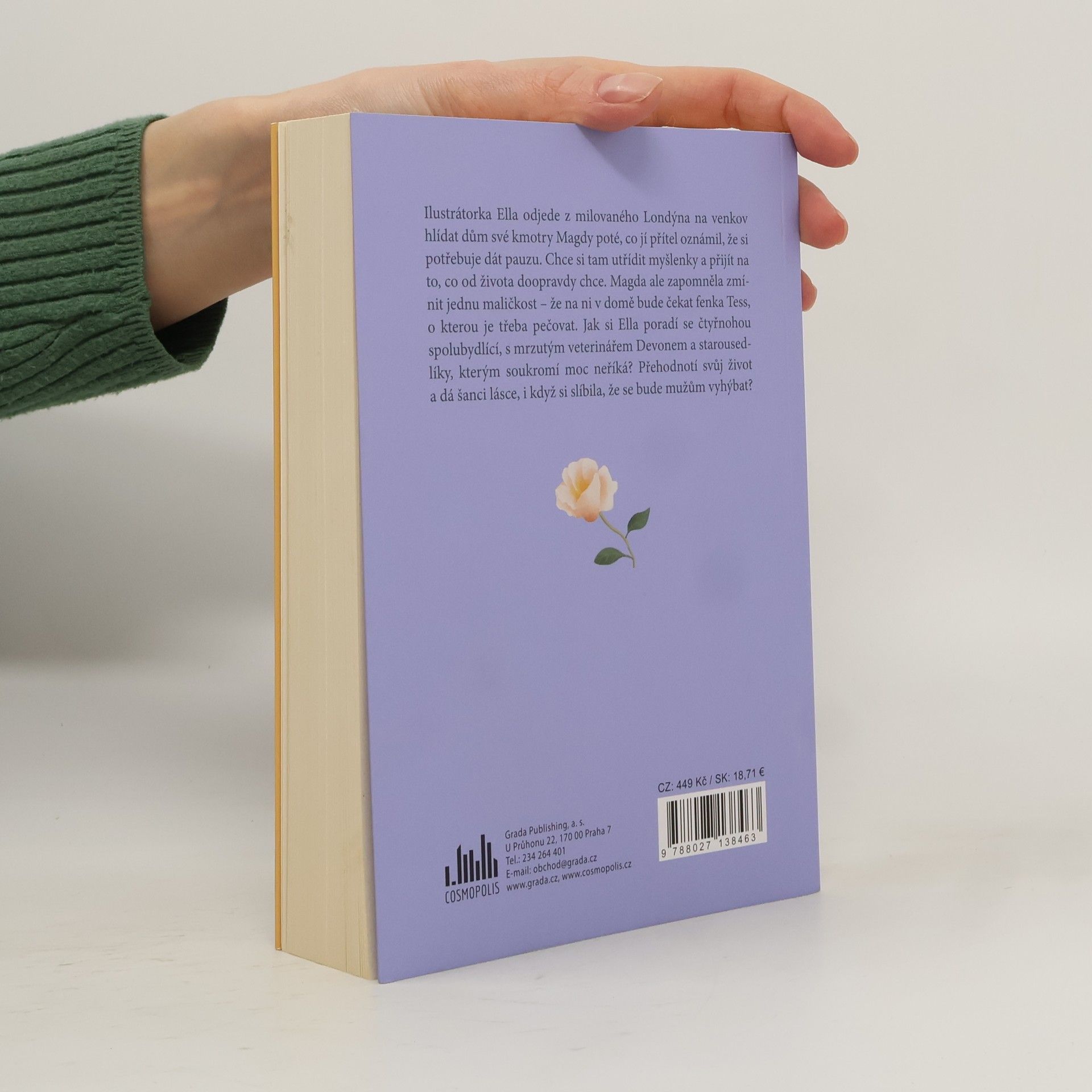 Ilustrátorka Ellla odjede z milovaného Londýna na venkov hlídat dům své kmotry Magdy poté, co jí přítel oznámil, že si potřebuje dát pauzu. Chce si tam utřídit myšlenky a přijít na to, co od života doopravdy chce. Magda ale zapomněla zmínit jednu maličkost – že na ni v domě bude čekat fenka Tess, o kterou je třeba pečovat. Jak si Ella poradí se čtyřnohou spolubydlící, s mrzutým veterinářem Devonem a starousedlíky, kterým soukromí moc neříká? Přehodnotí svůj život a dá šanci lásce, i když si slíbila, že se bude mužům vyhýbat?