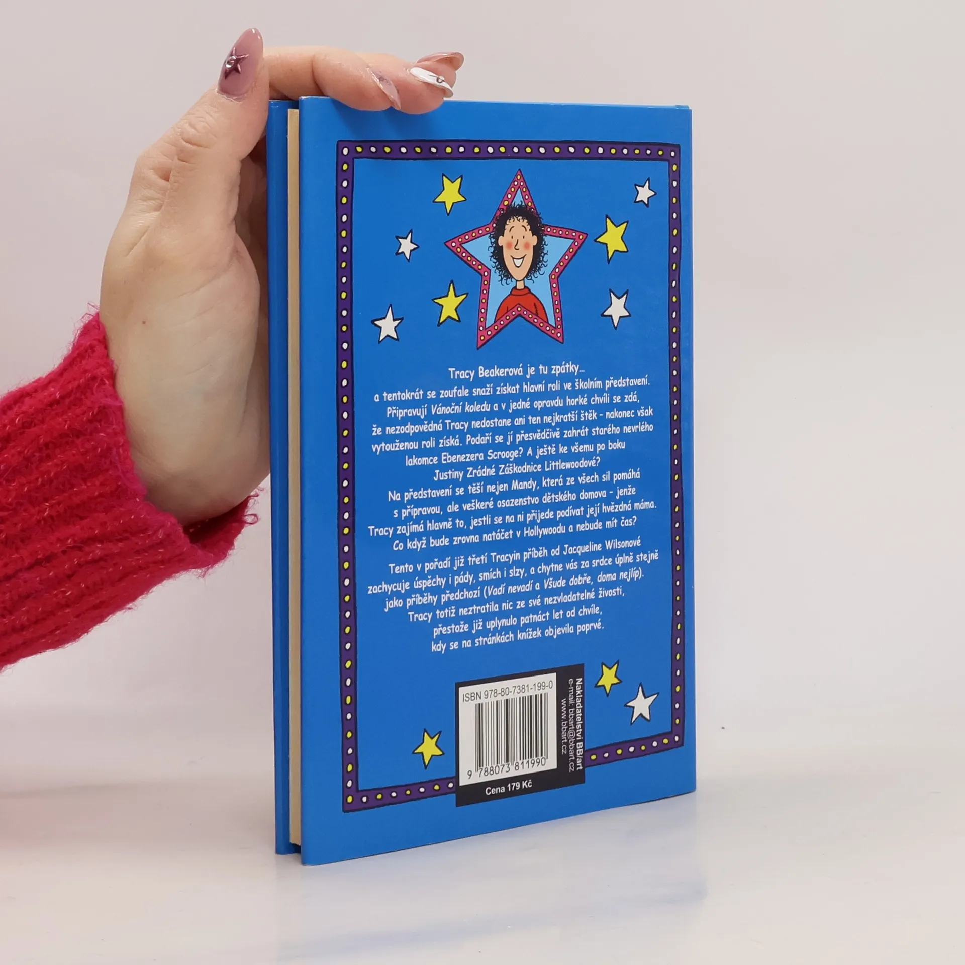 Tracy Beakerová je zpátky... A tentokrát se zoufale snaží získat hlavní roli ve školním představení. Připravují vánoční koledu a v jedné opravdu horké chvíli se zdá, že nezodpovědná Tracy nedostane ani ten nejkratší psí štěk - nakonec však vytouženou roli získá. Podaří se jí přesvědčivě zahrát starého nevrlého lakomce Ebenezera Scrooge? A ještě ke všemu po boku Justiny Zrádné Záškodnice Littlewoodové? Na představení se těší nejen Mandy, která ze všech sil pomáhá s přípravou, ale veškeré osazenstvo dětského domova - jenže Tracy zajímá hlavně to, jestli se na ni přijede podívat její hvězdná máma. Co když bude zrovna natáčet v Hollywoodu a nebude mít čas? Tento v pořadí již třetí Tracyin příběh od autorky dětských bestsellerů Jascqueline Wilsonové zachycuje její úspěchy i pády, smích i slzy, a chytne vás za srdce úplně stejně jako příběhy předchozí. Tracy totiž neztratila nic ze své nezvladatelné živosti, přestože je tomu již patnáct let, co se na stránkách knížek objevila poprvé.