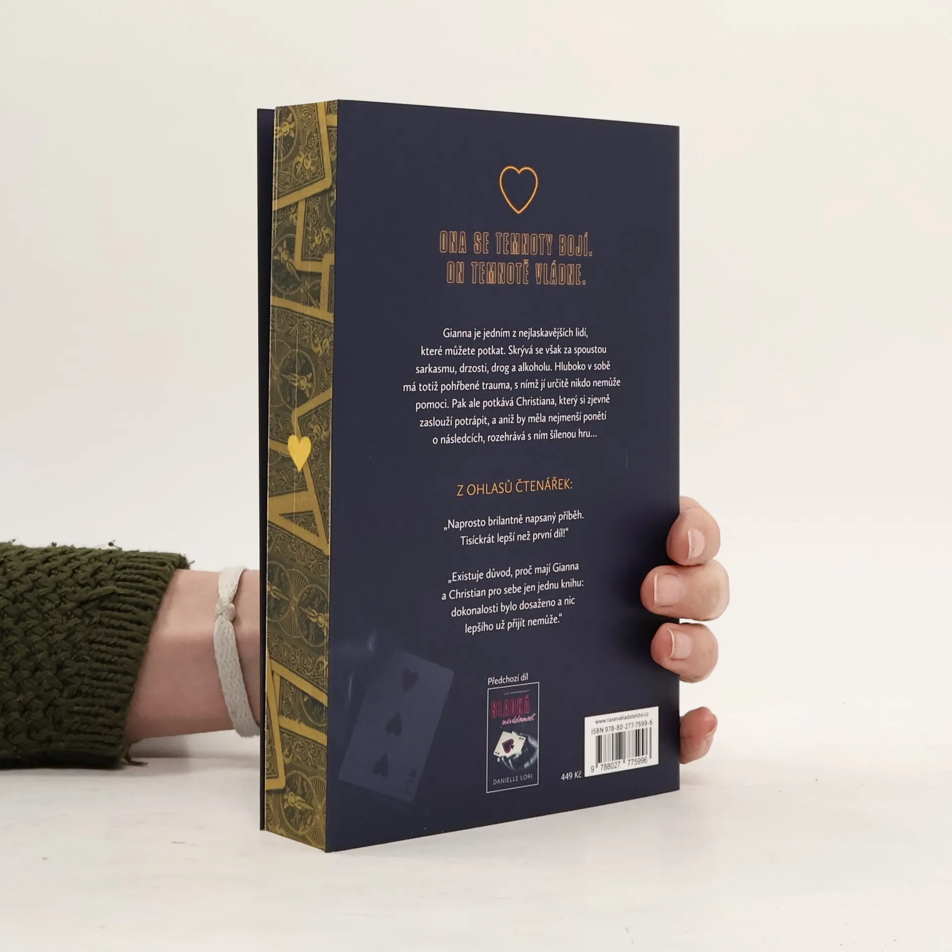 Její šaty jsou příliš těsné, podpatky příliš vysoké. Směje se příliš nahlas, občas neodolá kokainu a většin výroků si plete. Nikdo neví, že je to jen jiskřivý převlek, který má skrýt jeden záchvat paniky za druhým. Nikdo nedokáže rozbít Gianninu masku… Dokud nepřijde on. Většina lidí v něm vidí vzor morálky; zvláštního agenta dodržujícího zákon. V newyorském podsvětí ho však znají jako podvodníka a zabijáka s ledovým srdcem. Christian Allister vždy následoval svůj životní plán, který si vysnil v mládí, pod ostrými světly chladné, vlhké cely. V jeho realizování mu pomáhá záliba v čistotě a v číslu tři. Nikdy nebyl v pokušení vychýlit se z kurzu. Ale možná by se nikdy nemělo říkat nikdy… Jedné zimní noci se jejich životy propletou. Nenávidí ho – jeho chladné vystupování, jeho aroganci a příliš vnímavý pohled –, ale v průběhu let se s ním baví jen proto, aby si s ním hrála.