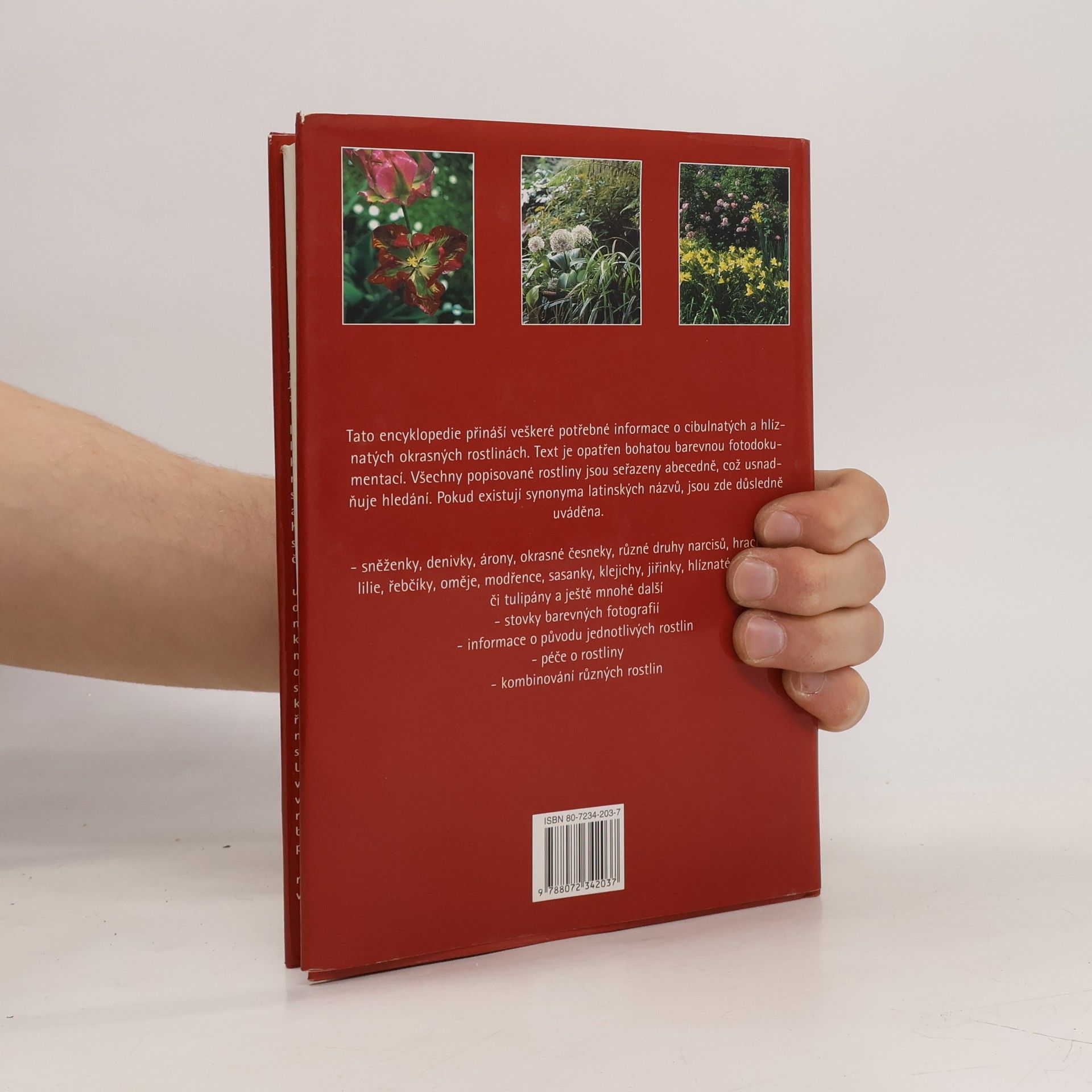 Tato encyklopedie přináší veškeré potřebné informace o cibulnatých a hlíznatých okrasných rostlinách. Text je opatřen bohatou barevnou fotodokumentací. Všechny popisované rostliny jsou seřazeny abecedně, což usnadňuje hledání. Pokud existuji synonyma latinských názvů, jsou zde důsledně uváděná.