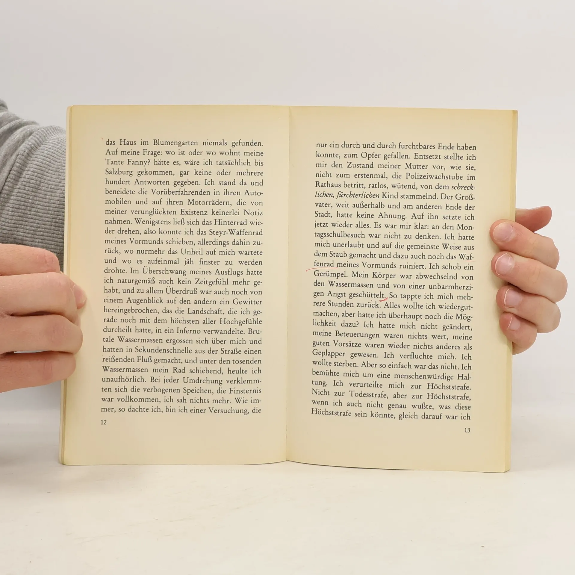 Die Schande einer unehelichen Geburt, die Alltagssorgen der Mutter und ihr ständiger Vorwurf: Du hast mein Leben zerstört! überschatten Thomas Bernhards Kindheitsjahre. Ein wahres Martyrium begann mit dem Eintritt in die Schule, in der sich der begabte Junge von Anfang an langweilte. es waren Jahre fern der Idylle, wenn auch nicht ohne Augenblicke des Hochgefühls. Und es war die Zeit des Nationalsozialismus und des Krieges.