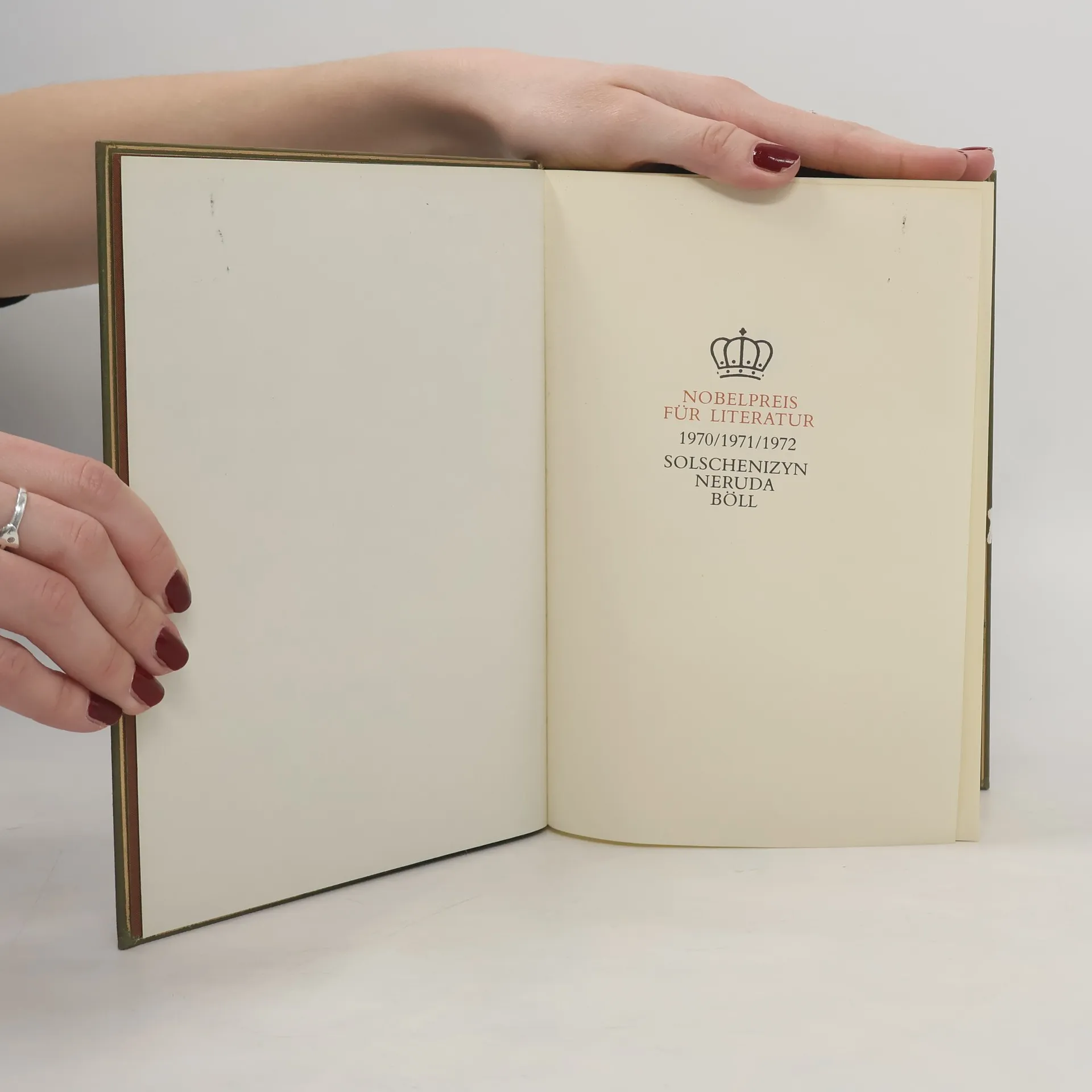 Skladem máme celkem knihy Nobelpreis für Literatur 1970-1972. Solschenizyn, Neruda, Böll ().