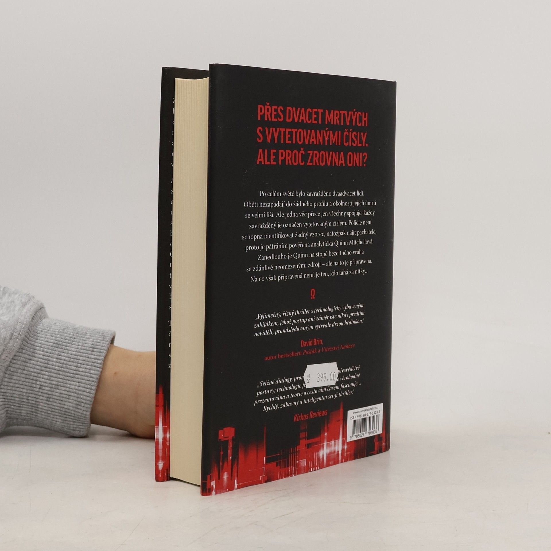 Změnili bychom svoji přítomnost, kdyby se nám naskytla možnost nahlédnout do budoucnosti? Můžeme se spolehnout na práci zpravodajských a tajných služeb a věřit jim, že se upřímně snaží zajistit obyvatelům této planety poklidný život v míru? Analytička Quinn Mitchellová se celý život snažila být dobrou manželkou a matkou. Po tragické smrti dcery se ovšem ocitá ve víru událostí, o kterých se jí dřív ani nezdálo. Když se po světě bez zjevné souvislosti začínají objevovat oběti s vytetovaným číslem, pouští se Quinn, která spatřuje nový smysl života v užší spolupráci se CIA, po stopách tajemného sériového vraha. Nová práce vyšetřovatelky ji nutí opustit domnělé bezpečí kanceláře a virtuálního prostředí a vrhnout se do světa kruté reality. Tento originálně napsaný román zavádí čtenáře do blízké budoucnosti a nabízí mu nevšední pohled na činnost tajných služeb a osudy lidí, kteří se rozhodli boji za spravedlnost zasvětit svůj život.