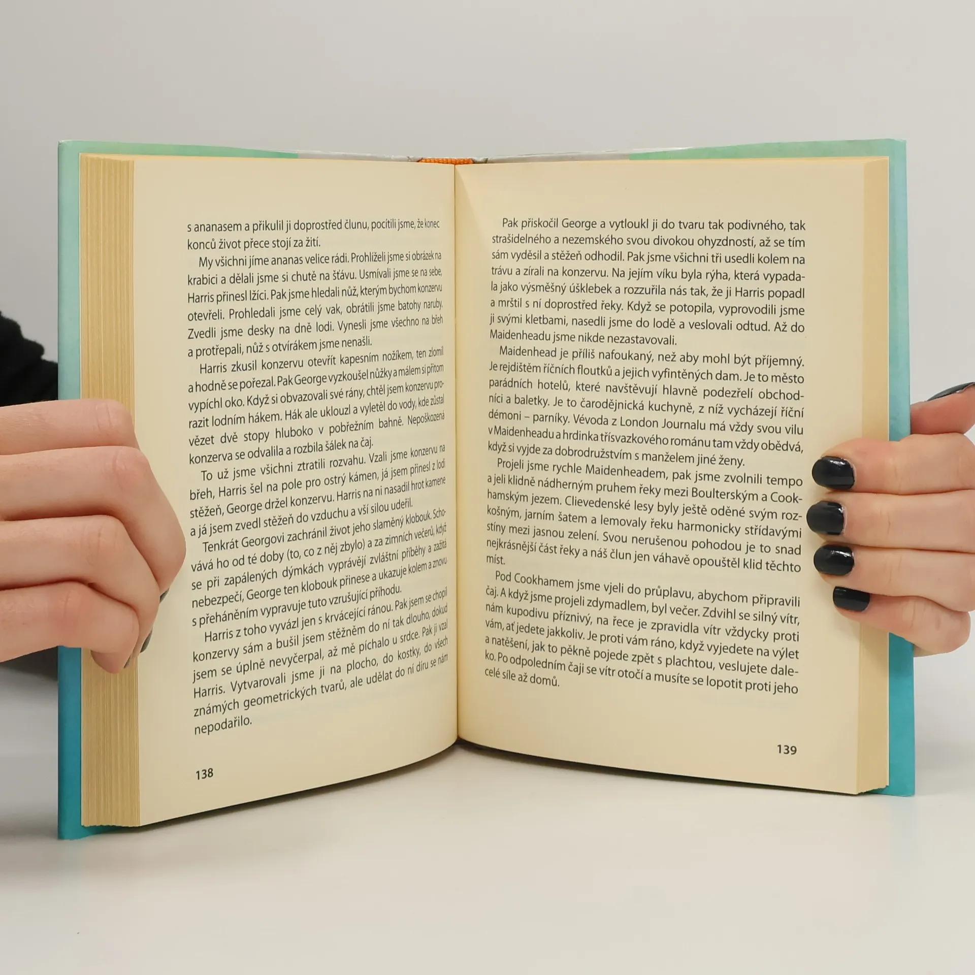 Kniha plná kultivovaného anglického humoru a sentimentu vás zavede na řeku Temži, kterou sjíždí tři přátelé a jeden pes. Jaké neuvěřitelné příhody a nehody prožívá během plavby tato čtveřice? Poznáte zlomyslnosti kartáčku na zuby a dozvíte se vše o sveřeposti čajových kotlíků i o tom, jak jim čelit. Přečtete si poučné poznámky o vyřezávaném dubu a o životě vůbec. Zjistíte, jak je nevýhodné žít v jednom domě s dvojicí milenců…