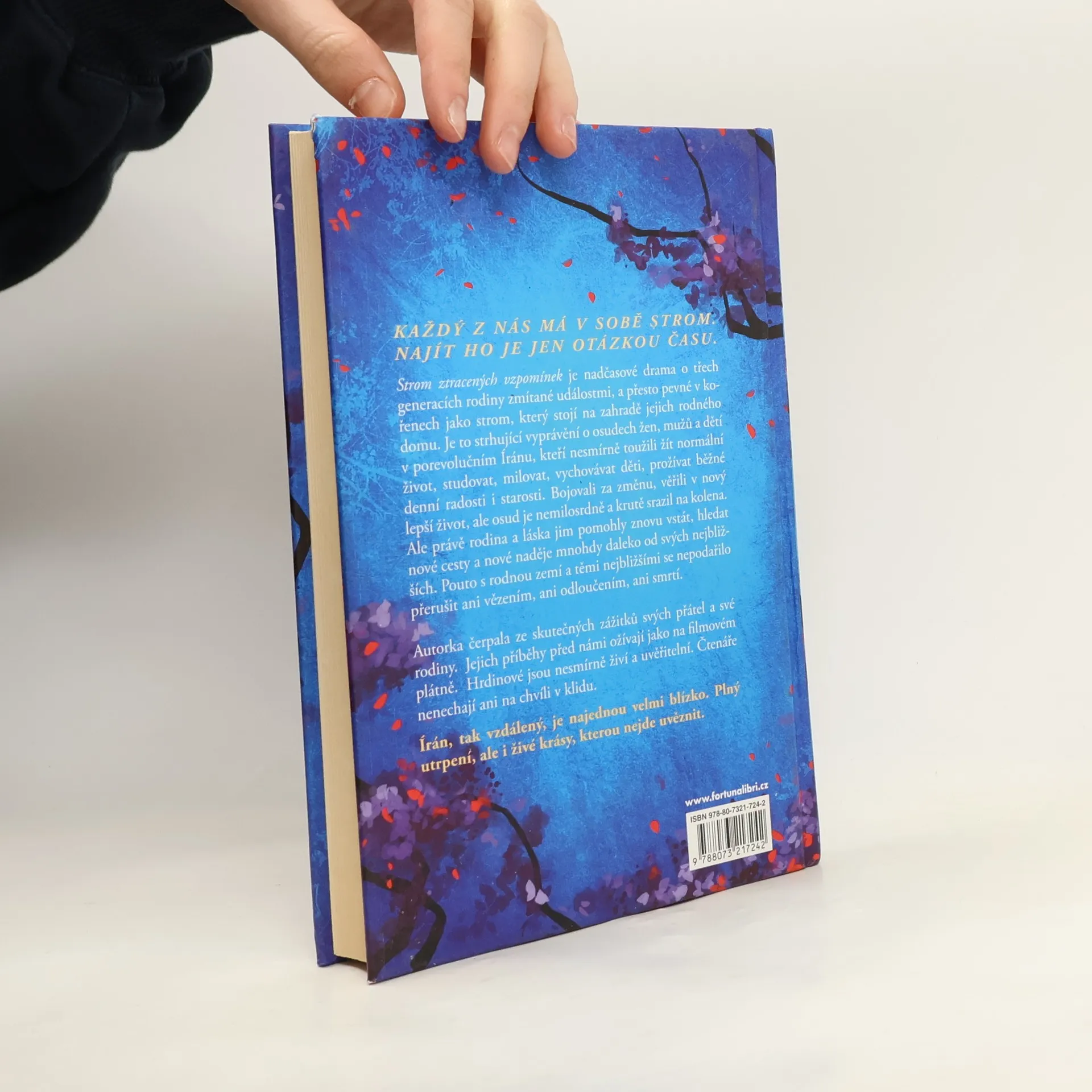 Každý z nás má v sobě strom. Najít ho je jen otázkou času. Strom ztracených vzpomínek je nadčasové drama o třech generacích rodiny zmítané událostmi a přesto pevné v kořenech jako strom, který stojí na zahradě jejich rodného domu. Je to strhující vyprávění o osudech žen, mužů a dětí v porevolučním Íránu, kteří nesmírně toužili žít normální život, studovat, milovat, vychovávat děti, prožívat běžné denní radosti i starosti. Bojovali za změnu, věřili v nový lepší život, ale osud je nemilosrdně a krutě srazil na kolena. Ale právě rodina a láska jim pomohla znovu vstát, hledat nové cesty a nové naděje mnohdy daleko od svých nejbližších. Pouto s rodnou zemí a těmi nejbližšími se nepodařilo přerušit ani vězením, ani odloučením, ani smrtí. Írán, tak vzdálený, je najednou velmi blízko. Plný utrpení, ale i živé krásy, kterou nejde uvěznit.