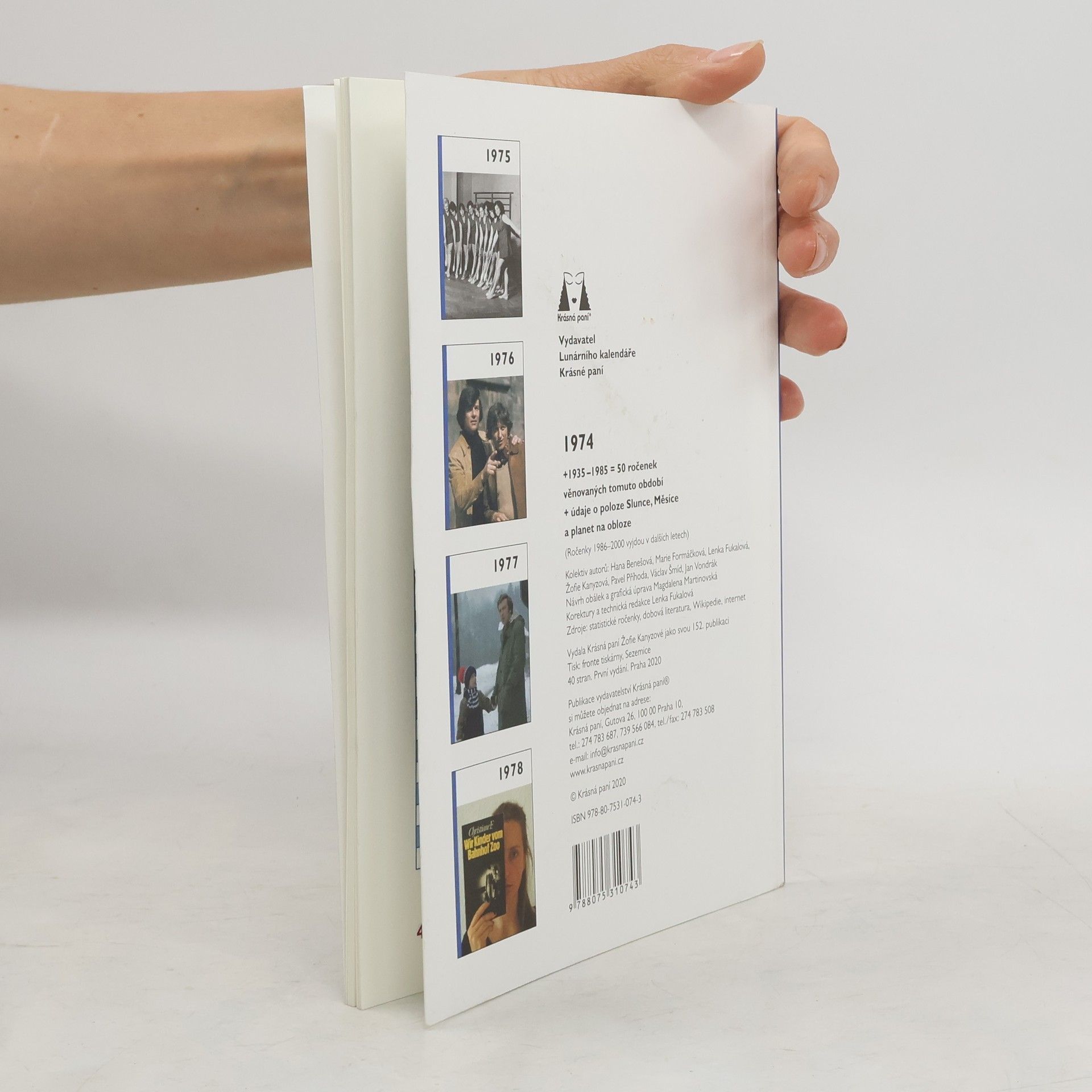 Ročenka 1974. Víte, jaké to bylo v roce, kdy jste se narodili? Kolik stál chleba, mléko nebo automobil? Co prožívali vaši rodiče? Co se dělo v kultuře nebo ve sportu? Jaká byla tehdy móda? Na jaký film se chodilo v roce, kdy jste se vdávali či ženili? Jaké rubriky v ročence najdete: Události z domova i ze světa, Kolik co stálo, Móda, Vynálezy, Kultura, Filmy, Architektura, Sport, Kronika, Narození