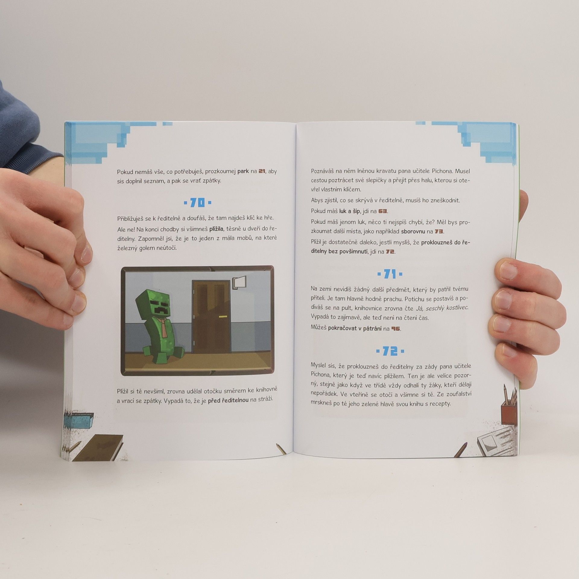 JSTE UVĚZNĚNI, MALÍ HRÁČI! Váš kamarád Adrien je génius. Díky němu jste neporazitelní v Minecraftu. Nic ale nejde podle plánu a Adrienova manipulace s hrou má katastrofální následky. Jste zaseknutí v počítačové hře… a škola je plná nebezpečných mobů! Budete potřebovat chladnou hlavu a zdravý rozum při řešení hádanek, abyste se mohli vrátit zpět do reálného světa.