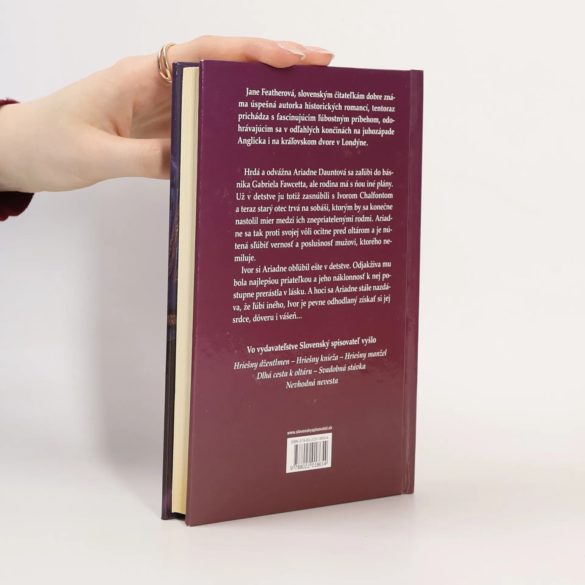 Fascinujúci ľúbostný príbeh. Hrdá a odvážna Ariadne Dauntová sa zaľúbi do básnika Gabriela Fawcetta, ale rodina má s ňou iné plány. Už v detstve ju zasnúbili s Ivorom Chalfontom a teraz starý otec trvá na sobáši, ktorým by sa konečne nastolil mier medzi ich znepriatelenými rodmi. Ariadne sa tak proti svojej vôli ocitne pred oltárom s mužom, ktorého nemiluje. Ivor si Ariadne obľúbil ešte v detstve a jeho náklonnosť k nej postupne prerástla v lásku. A hoci sa Ariadne stále nazdáva, že miluje iného, Ivor je odhodlaný získať si jej srdce, dôveru i vášeň...