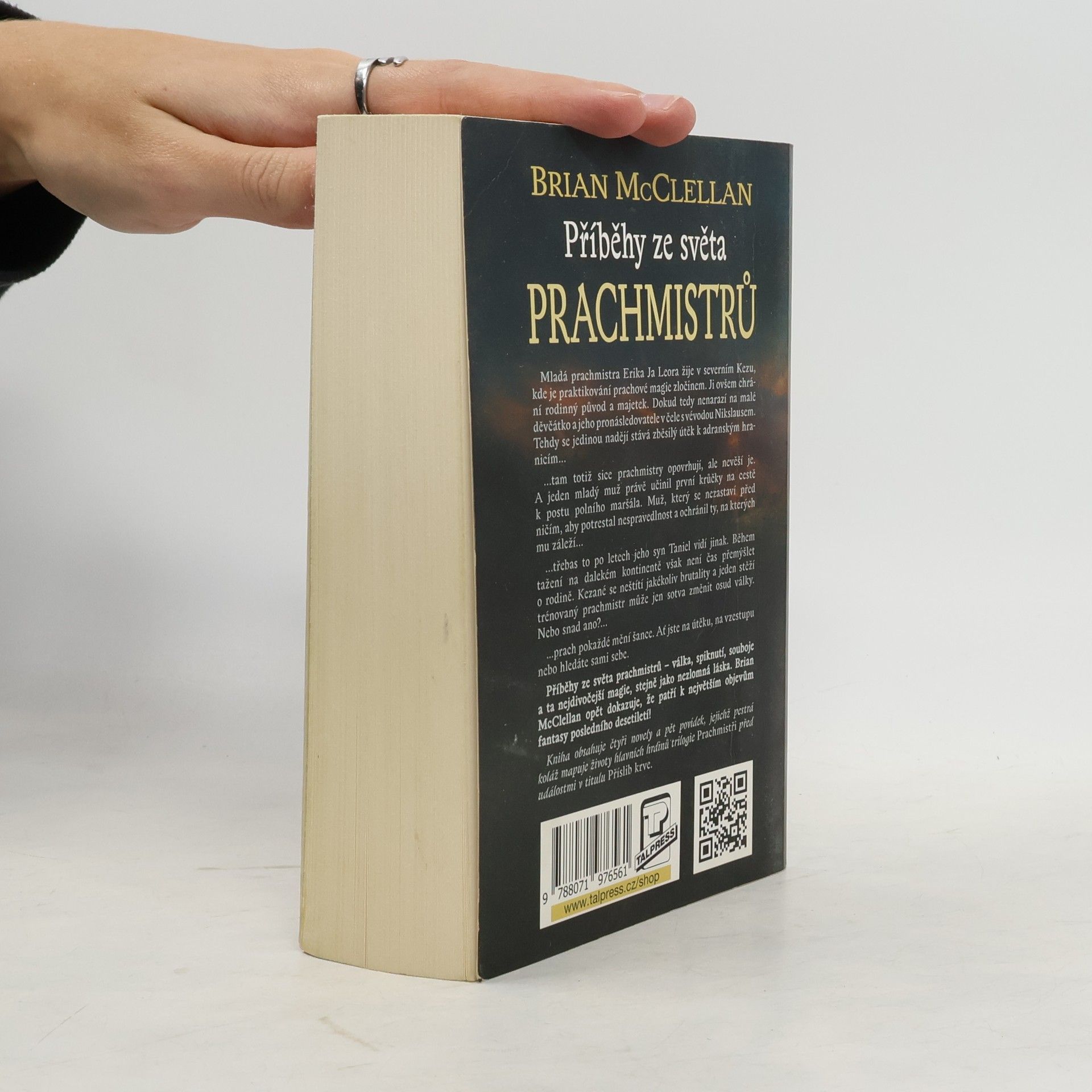 Mladá prachmistra Erika Ja Leora žije v severním Kezu, kde je praktikování prachové magie zločinem. Ji ovšem chrání rodinný původ a majetek. Dokud tedy nenarazí na malé děvčátko a jeho pronásledovatele v čele s vévodou Nikslausem. Tehdy se jedinou nadějí stává zběsilý útěk k adranským hranicím... ... tam totiž sice prachmistry opovrhují, ale nevěší je. A jeden mladý muž právě učinil první krůčky na cestě k postu polního maršála. Muž, který se nezastaví před ničím, aby potrestal nespravedlnost a ochránil ty, na kterých mu záleží... ... třebas to po letech jeho syn Taniel vidí jinak. Během tažení na dalekém kontinentě však není čas přemýšlet o rodině. Kezané se neštítí jakékoliv brutality a jeden stěží trénovaný prachmistr může jen sotva změnit osud války. Nebo snad ano?... .-..prach pokaždé mění šance. Ať jste na útěku, na vzestupu nebo hledáte sami sebe. Série Prachmistři 0.1 - 0.8 + 1.5