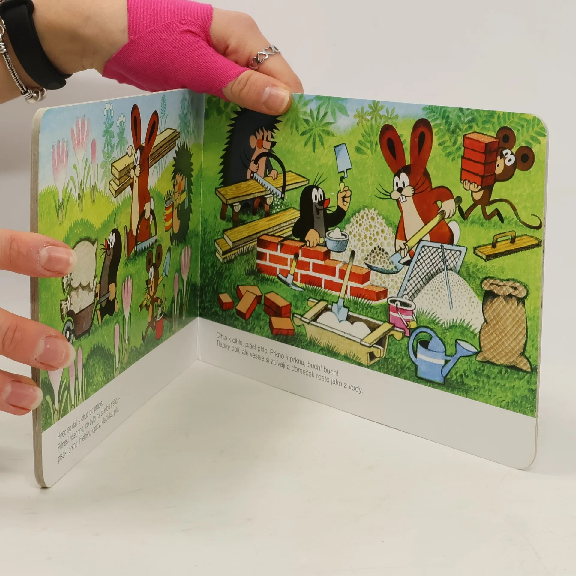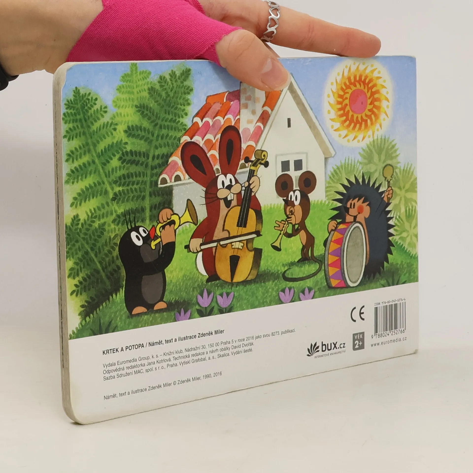 Leporelo pro děti s půvabnými ilustracemi Zdeňka Milera o krtkovi a jeho přátelích. Tento příběh vypráví o tom, jak krtek s ježkem a zajíčkem pomohli myšce přestát potopu, zachránili ji a ještě postavili nový domeček. Inu, kamarádi jak se patří.