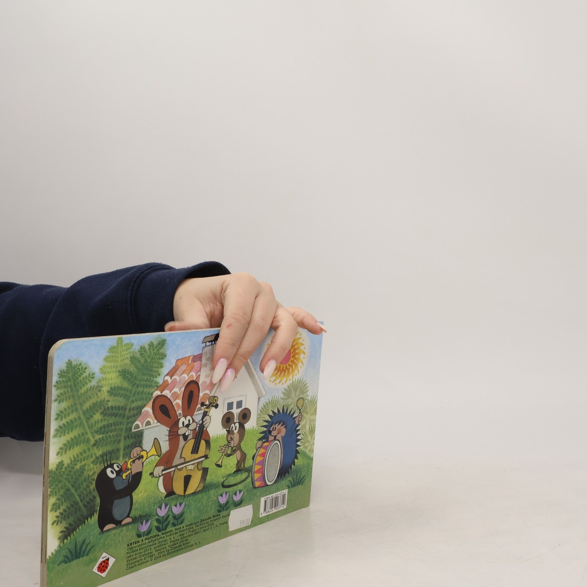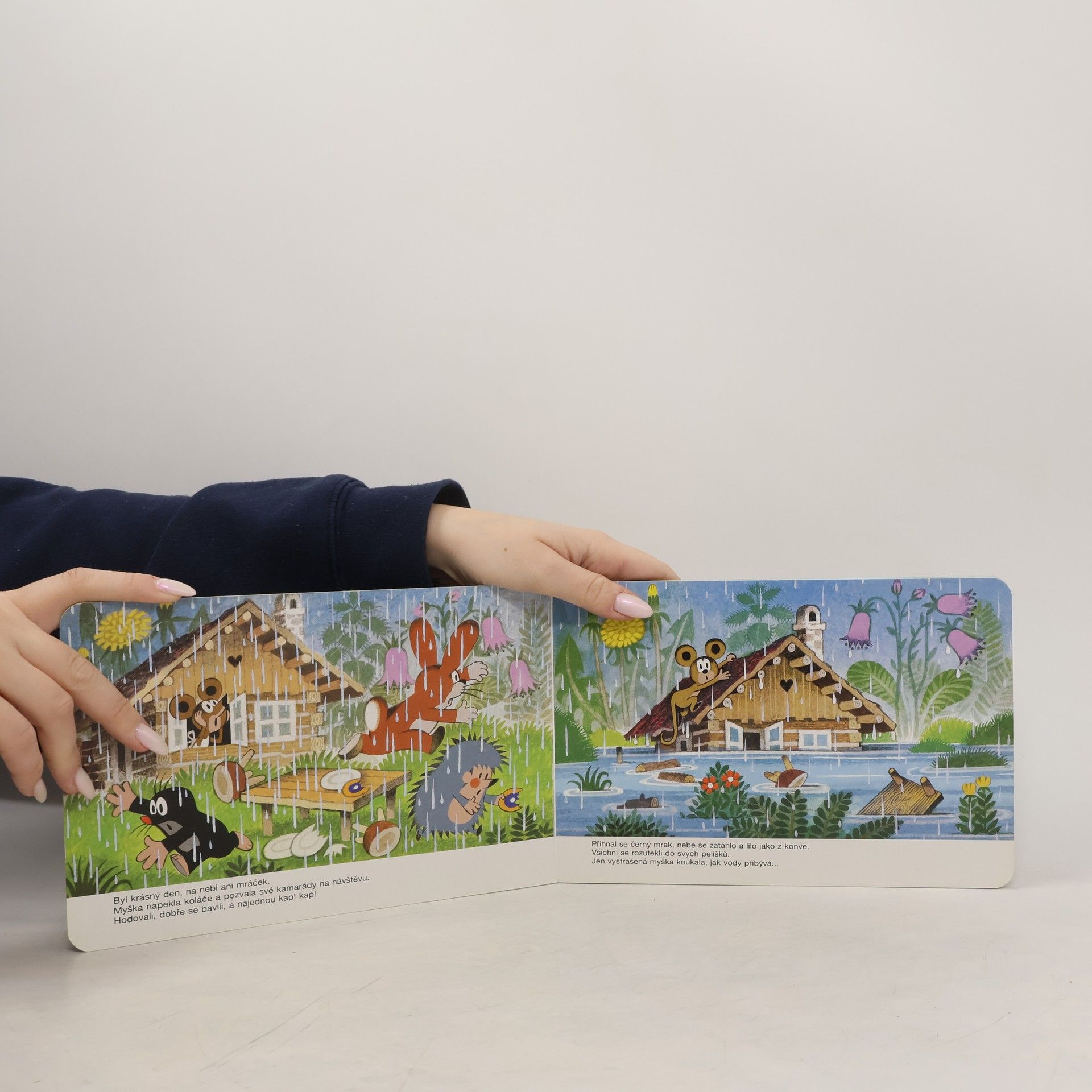 Leporelo pro děti s půvabnými ilustracemi Zdeňka Milera o krtkovi a jeho přátelích. Tento příběh vypráví o tom, jak krtek s ježkem a zajíčkem pomohli myšce přestát potopu, zachránili ji a ještě postavili nový domeček. Inu, kamarádi jak se patří.