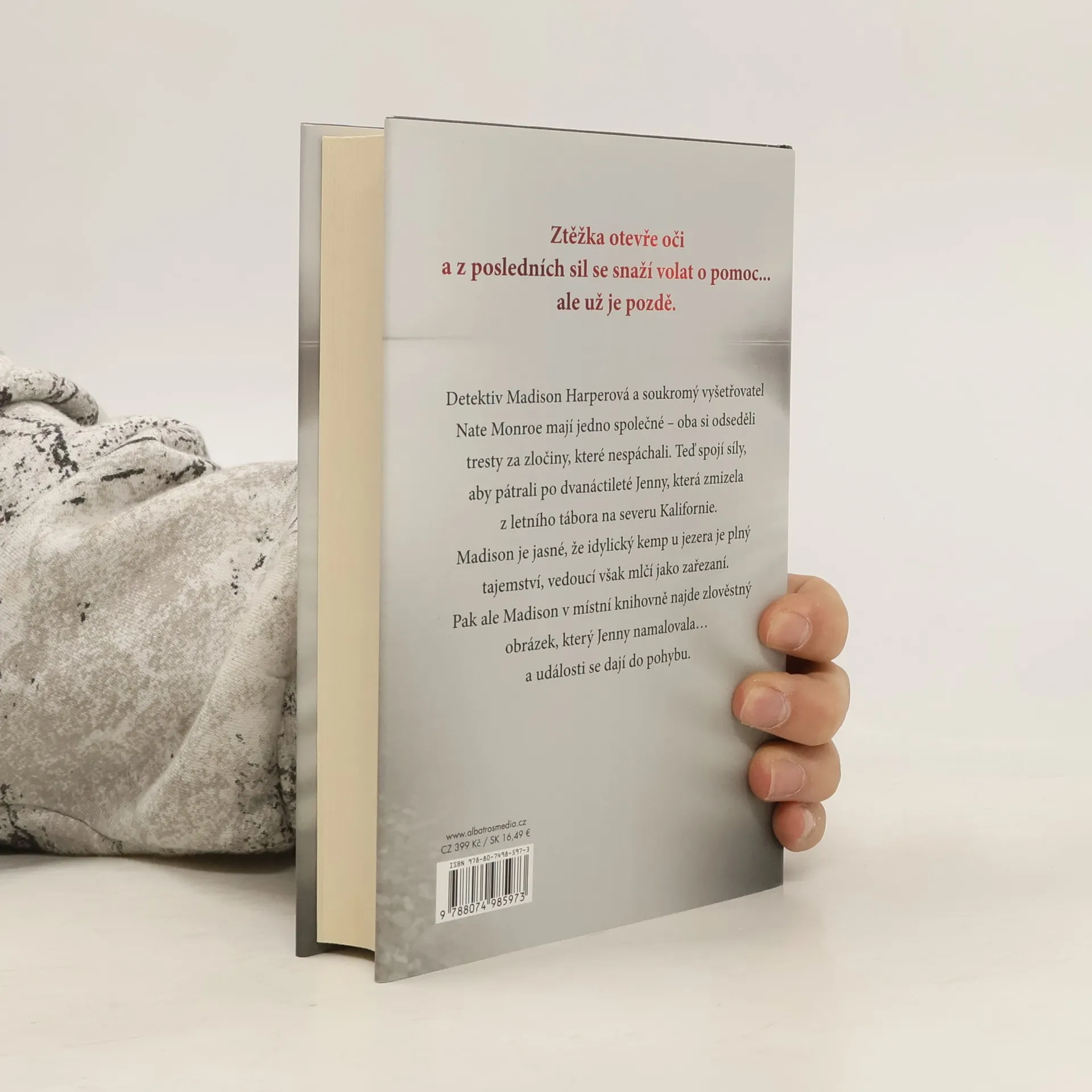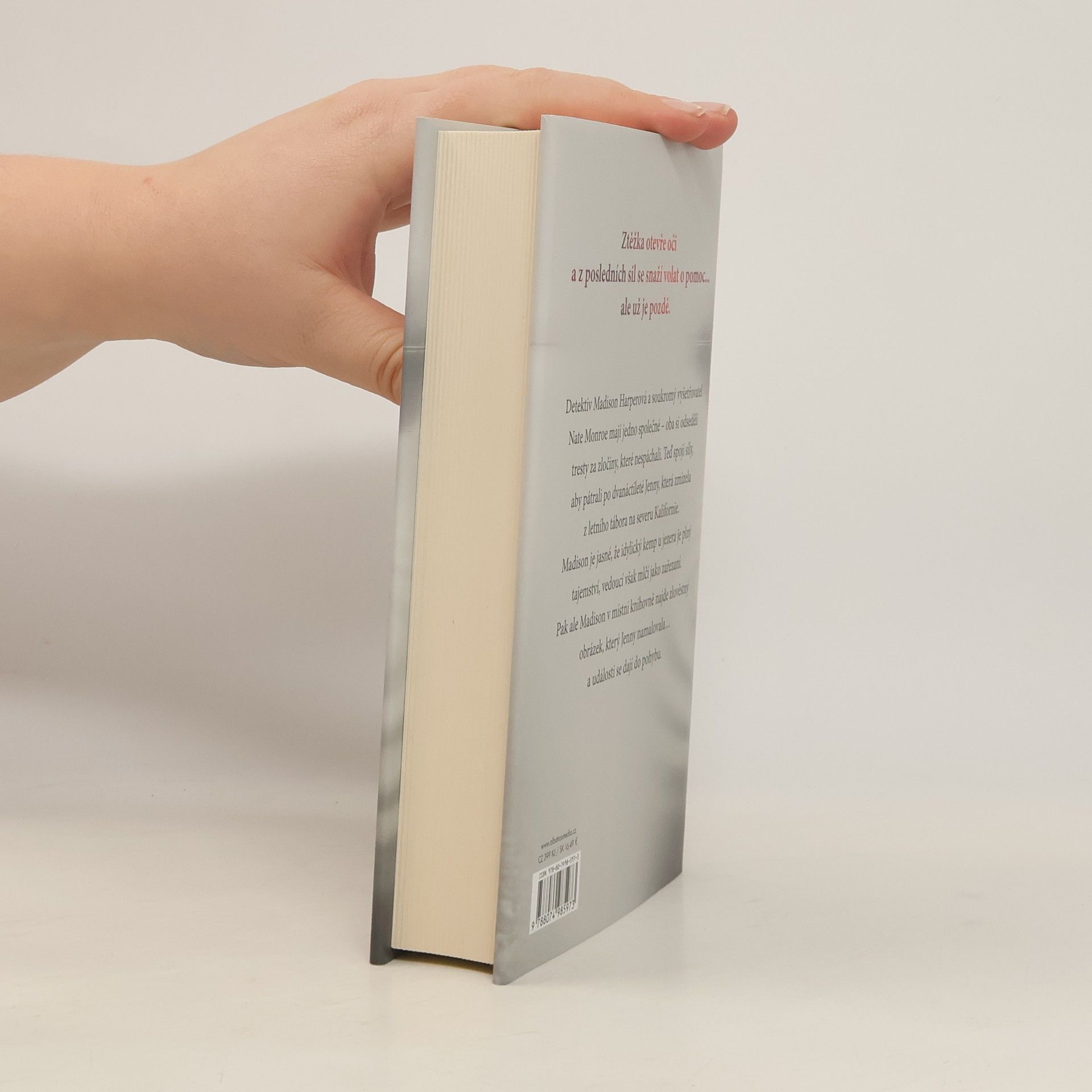 Začátek strhující detektivní série od bestsellerové autorky Detektiv Madison Harperová a soukromý vyšetřovatel Nate Monroe mají jedno společné – oba si odseděli tresty za zločiny, které nespáchali. Teď spojí síly, aby pátrali po dvanáctileté Jenny, která zmizela z letního tábora na severu Kalifornie. Madison je jasné, že idylický kemp u jezera je plný tajemství, vedoucí však mlčí jako zařezaní. Pak ale Madison v místní knihovně najde zlověstný obrázek, který Jenny namalovala… a události se dají do pohybu.Madison Harperová byla odsouzena za zločin, který nespáchala. Teď je ale na svobodě a je odhodlaná zjistit, kdo ji do vězení dostal. Pátrání ji přivede za Natem Monroem. I on se totiž neprávem ocitl v cele, kde čekal na trest smrti za vraždu své snoubenky. Byl však zproštěn viny a po svém propuštění se stal soukromým vyšetřovatelem.Madison doufá, že s Nateovou pomocí očistí své jméno, najde svého syna a získá zpět místo u policejního sboru. Na Natea však čeká jiný případ, který musí nejdřív vyřešit. A tak se společně vydávají na sever Kalifornie, aby pátrali po dvanáctileté Jenny, která beze stopy zmizela z letního tábora.Je jasné, že idylický kemp u jezera je plný tajemství. Vedoucí mlčí jako zařezaní a Jennyini rodiče nejsou dvakrát nadšení, že se soukromí vyšetřovatelé pletou policii pod nohy. Když ale Madison v místní knihovně najde zlověstný obrázek, který Jenny namalovala, události se konečně dají do pohybu…