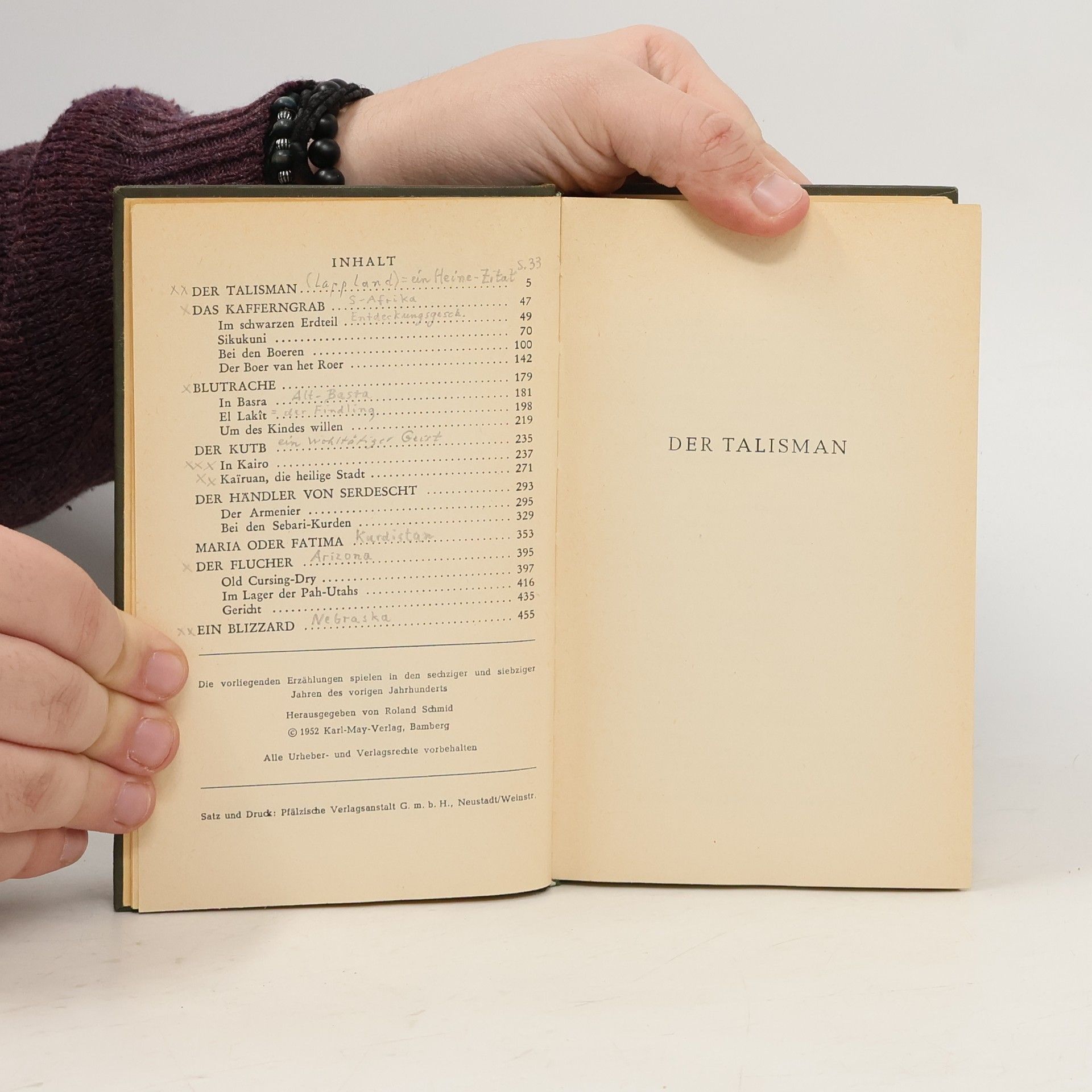 Auf fremden Pfaden reist der Erzähler durch die ganze Welt: vom Rentierzelt in Lappland bis zu den Lagern der Kurden, von den Beduinendörfern der Sahara bis ins Gebiet der Amerikanischen Indianer. Treue Freunde, vor allem Winnetou und Hadschi Halef Omar, stehen ihm in den acht Geschichten zur Seite.Der Band enthält folgende Erzählungen:1.) Der Talisman2.) Das Kafferngrab3.) Blutrache4.) Der Kutb5.) Der Händler von Serdescht6.) Maria oder Fatima7.) Der Flucher8.) Ein Blizzard