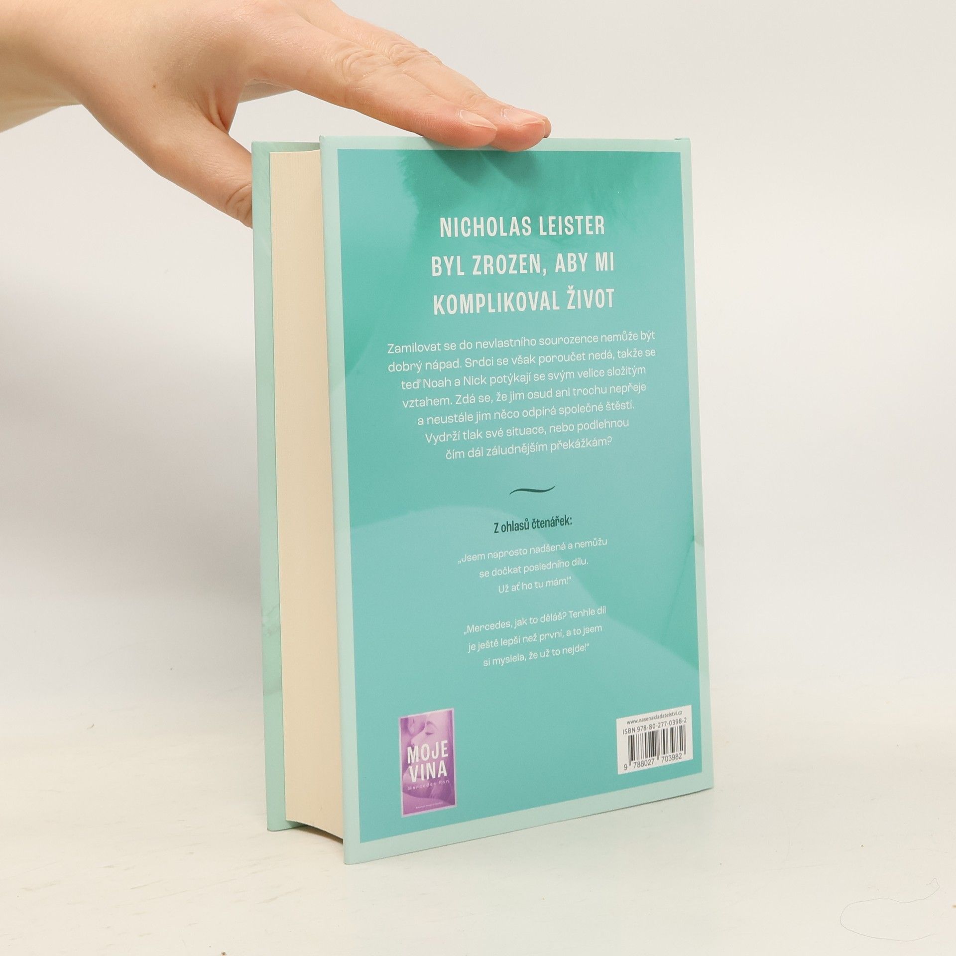 Kniha Tvoje vina, druhý díl romantické trilogie Viníci od Mercedes Ron o drsňákovi s velkým srdcem a hodné dívce s velkou odvahou, obsahuje ještě víc romantiky, zrady a záhad.Když se Noah zamilovala do Nicka, věděla, že jejich vztah nebude snadný: jsou protikladní jako oheň a voda a když jsou spolu, létají nebezpečné jiskry... naprosto ve všech směrech.Dosud byla jejich vášeň ještě silnější než jejich hrdost, ale věkový rozdíl, vysoká škola, večírky, rodiče a stíny z minulosti, které oba pronásledují, je znovu a znovu zkoušejí jako časovaná bomba, která hrozí výbuchem.Je Noah opravdu připravena čelit svému strachu a znovu někomu důvěřovat?Dokáže se Nicholas oprostit od své minulosti a otevřít své srdce jedné jediné osobě?