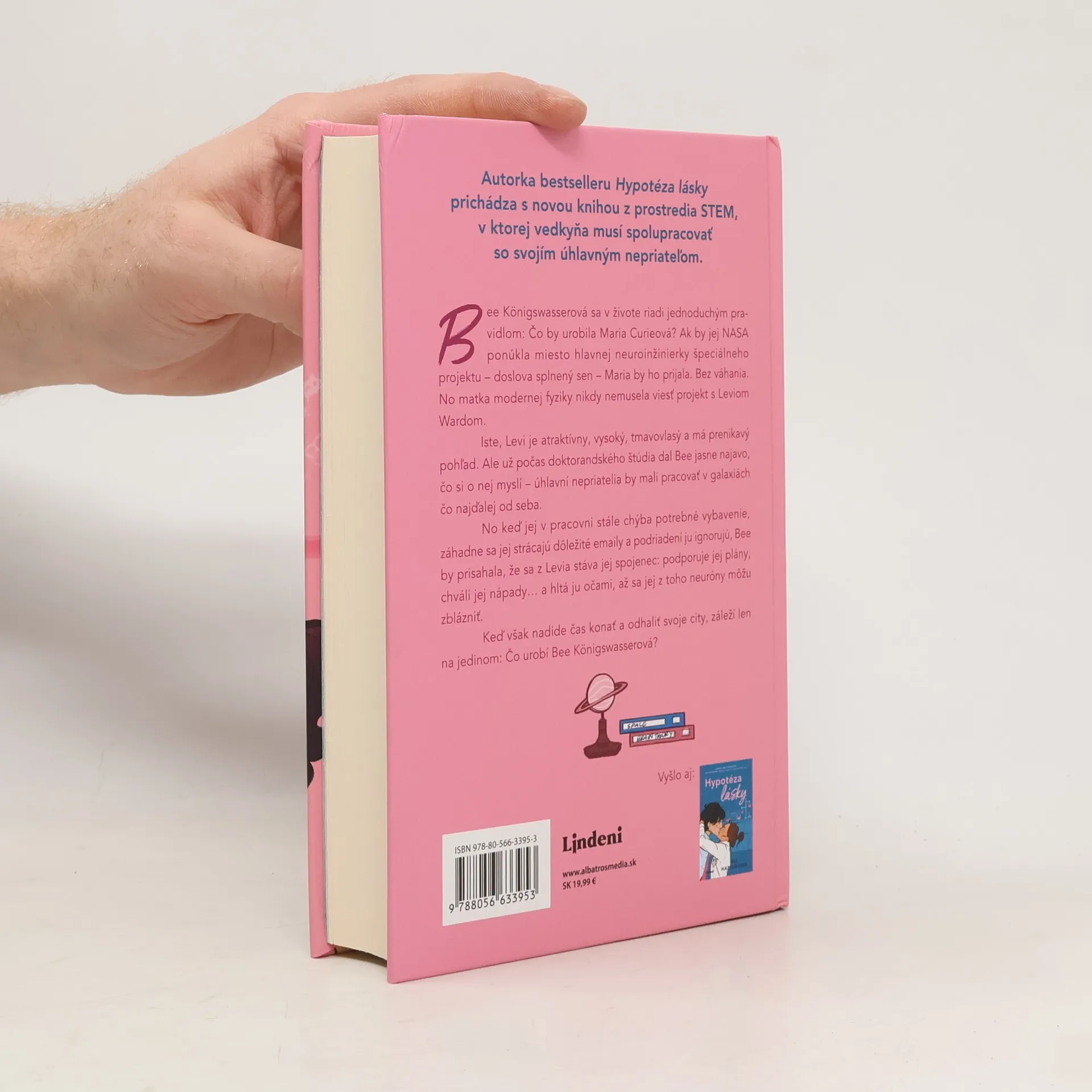 Autorka bestselleru Hypotéza lásky prichádza s novou knihou z prostredia STEM, v ktorej vedkyňa musí spolupracovať so svojím úhlavným nepriateľom. Bee Königswasserová sa v živote riadi jednoduchým pravidlom: Čo by urobila Maria Curieová? Ak by jej NASA ponúkla miesto hlavnej neuroinžinierky špeciálneho projektu – doslova splnený sen – Maria by ho prijala. Bez váhania. No matka modernej fyziky nikdy nemusela viesť projekt s Leviom Wardom. Iste, Levi je atraktívny, vysoký, tmavovlasý a má prenikavý pohľad. Ale už počas doktorandského štúdia dal Bee jasne najavo, čo si o nej myslí – úhlavní nepriatelia by mali pracovať v galaxiách čo najďalej od seba. No keď jej v pracovni stále chýba potrebné vybavenie, záhadne sa jej strácajú dôležité emaily a podriadení ju ignorujú, Bee by prisahala, že sa z Levia stáva jej spojenec: podporuje jej plány, chváli jej nápady… a hltá ju očami, až sa jej z toho neuróny môžu zblázniť. Keď však nadíde čas konať a odhaliť svoje city, záleží len na jedinom: Čo urobí Bee Königswasserová?
