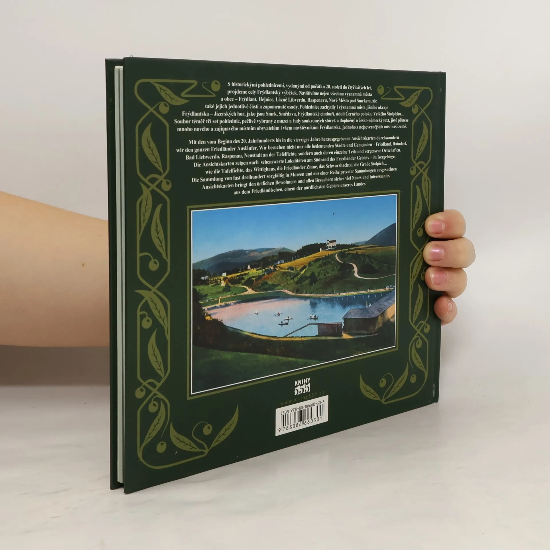 Autoři dalšího dílu jedinečné a oblíbené edice Album starých pohlednic nás zavedou prostřednictvím historických pohlednic, vydaných od počátku 20. století do čtyřicátých let, do Frýdlantského výběžku. Čtenář navštíví nejen všechna města a obce oblasti – Frýdlant, Bílý Potok pod Smrkem, Hejnice, Lázně Libverdu, Raspenavu, Višňovou, Nové Město pod Smrkem, Jindřichovice pod Smrkem, Dětřichov, Heřmanice, Kunratice, Višňovou, Černousy, Arnoltice, Pertoltice, Krásný Les, Horní a Dolní Řasnici, Bulovku, ale také jejich jednotlivé části a zapomenuté osady. Pohlednice zachytily i významná místa jižního okraje Frýdlantska – Jizerských hor, jako jsou Smrk, Smědava, Paličník, Frýdlantské cimbuří, Ořešník, údolí Černého potoka, Velký Štolpich... V několika případech se publikace dotýká i polského území. Soubor téměř tří set pohlednic, pečlivě vybraný z muzeí a řady soukromých sbírek a doplněný o česko-německý text, jistě přinese mnoho nového a zajímavého místním obyvatelům i všem návštěvníkům Frýdlantska, jednoho z nejsevernějších míst naší země. ISBN 978-80-86660-30-3 (chybné)