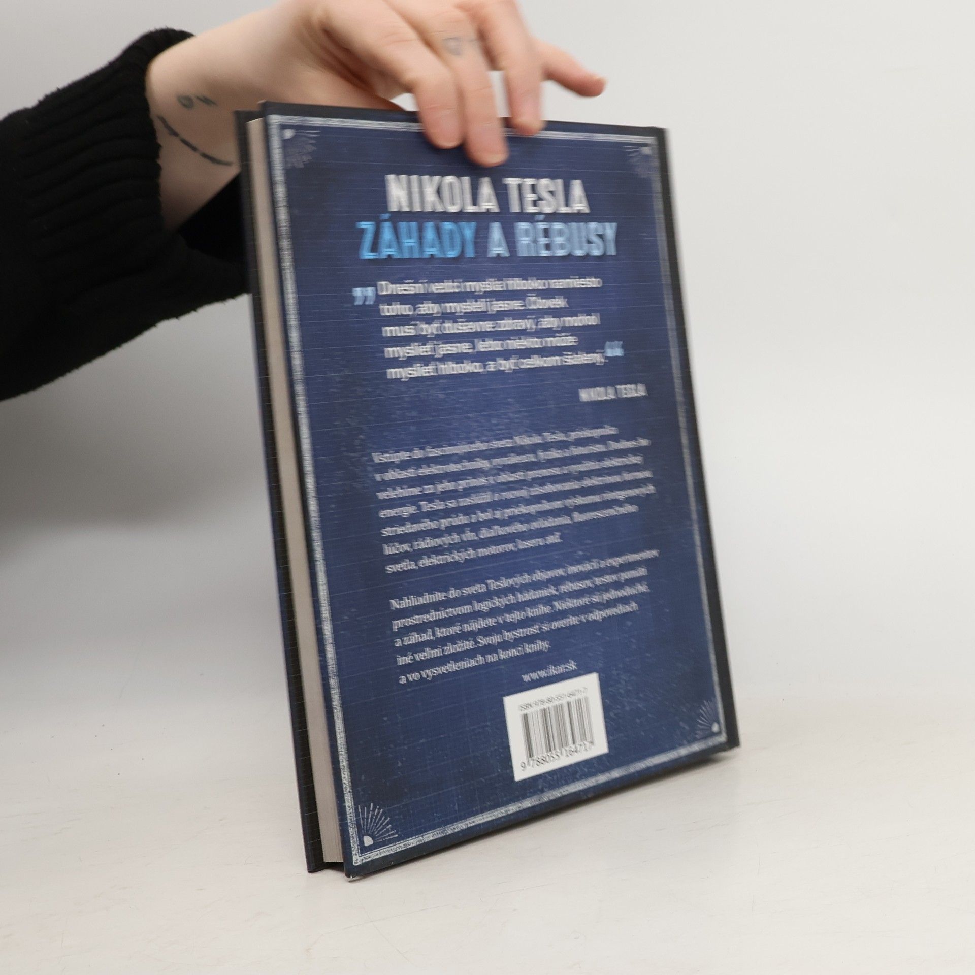 Dnešní vedci myslia hlboko namiesto toho, aby mysleli jasne. Človek musí byť duševne zdravý, aby mohol myslieť jasne, lebo niekto môže myslieť hlboko, a byť celkom šialený. - Nikola Tesla - Vstúpte do fascinujúceho sveta Nikolu Teslu, priekopníka v oblasti elektrotechniky, vynálezcu, fyzika a futuristu. Dodnes ho velebíme za jeho prínos v oblasti prenosu a využitia elektrickej energie. Tesla sa zaslúžil o rozvoj zásobovania elektrinou formou striedavého prúdu a bol aj priekopníkom výskumu röntgenových lúčov, rádiových vĺn, diaľkového ovládania, fluorescenčného svetla, elektrických motorov, laseru atď. Nahliadnite do sveta Teslových objavov, inovácií a experimentov prostredníctvom logických hádaniek, rébusov, testov pamäti a záhad, ktoré nájdete v tejto knihe. Niektoré sú jednoduché, iné až diabolsky zložité. Svoju bystrosť si overíte v odpovediach a vo vysvetleniach na konci knihy.