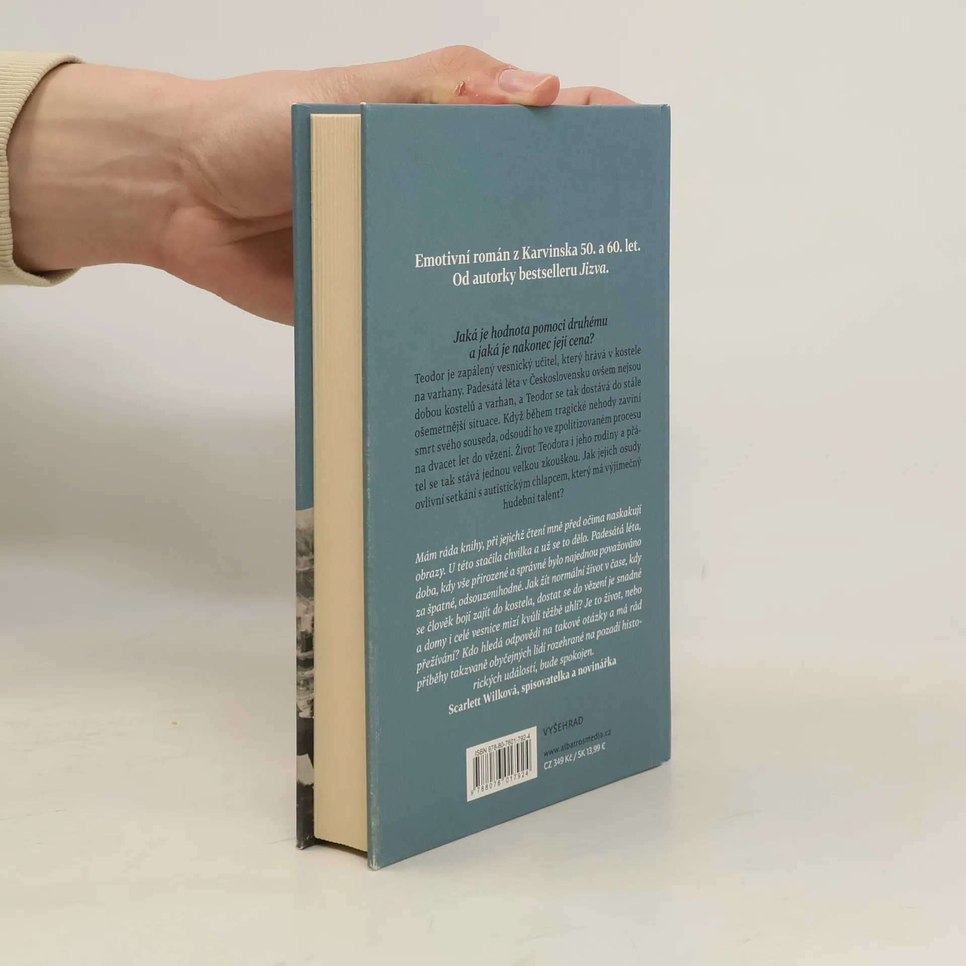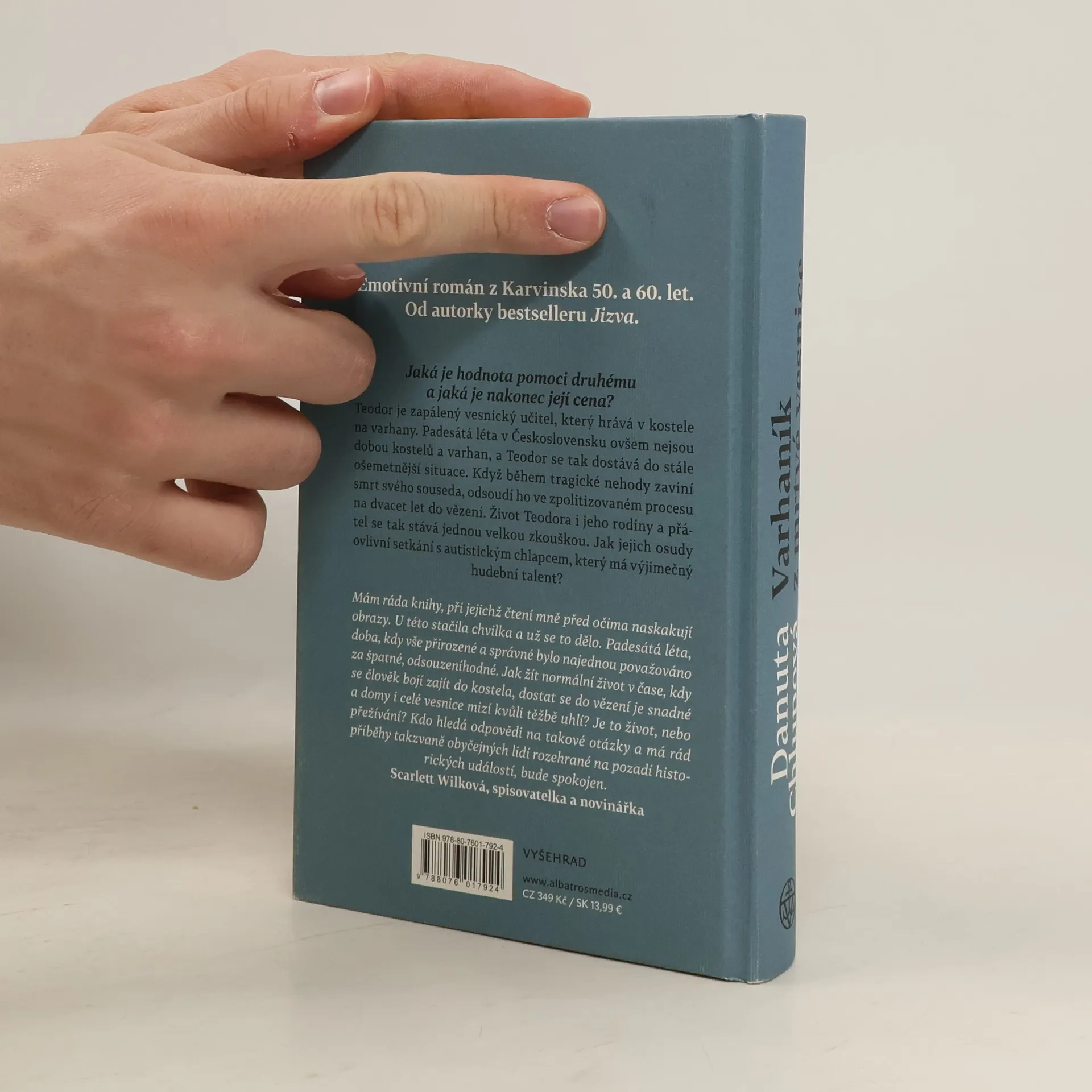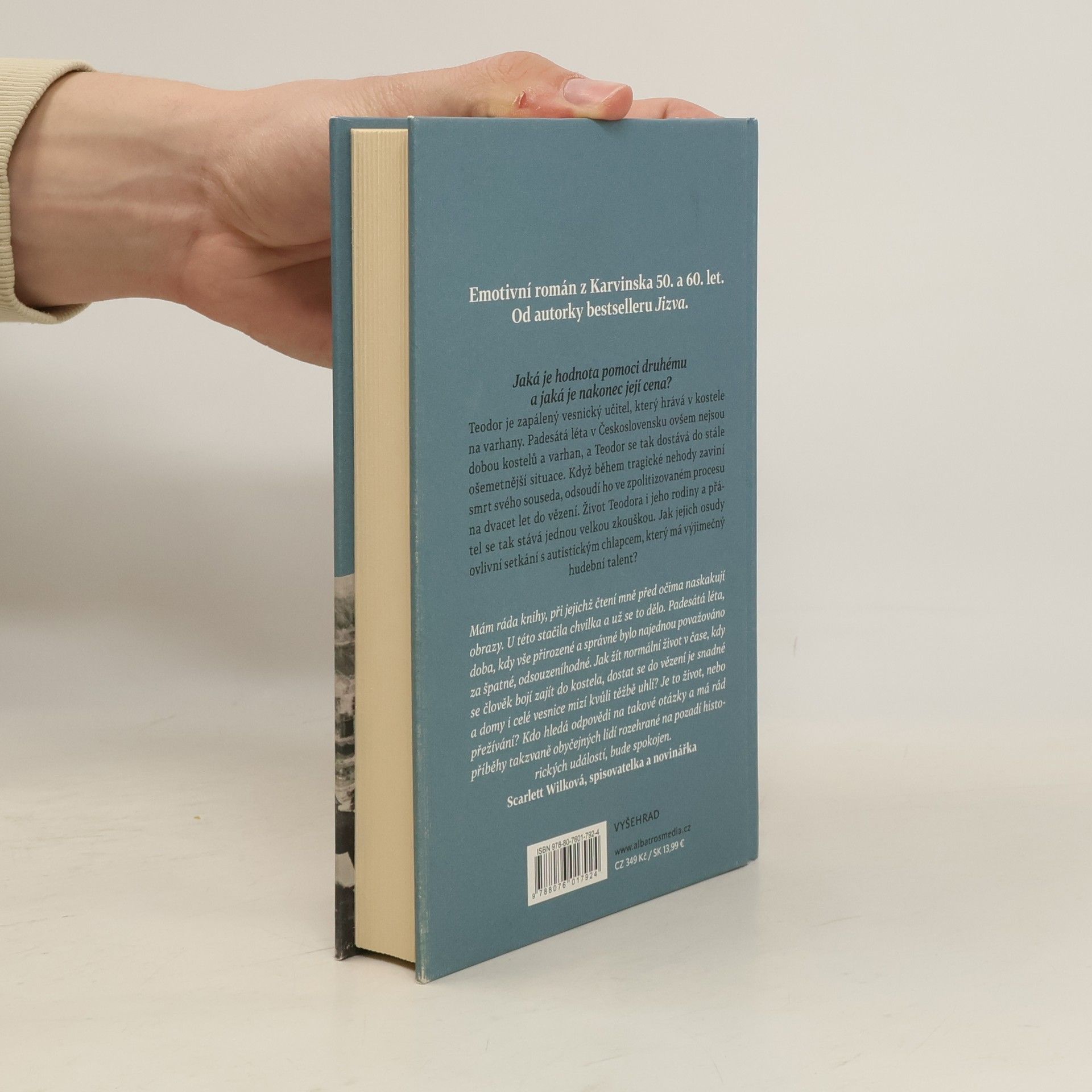 Emotivní román z Karvinska 50. a 60. let. Od autorky bestselleru Jizva. Teodor je zapálený vesnický učitel, který hrává v kostele na varhany. Padesátá léta v Československu ovšem nejsou dobou varhan a kostelů, a Teodor se tak dostává do stále ošemetnější situace. Když během tragické nehody zaviní smrt svého souseda, odsoudí ho ve zpolitizovaném procesu na dvacet let do vězení. Život Teodora i jeho rodiny a přátel se tak stává jednou velkou zkouškou. Jak jejich osudy ovlivní setkání s autistickým chlapcem, který má výjimečný hudební talent?