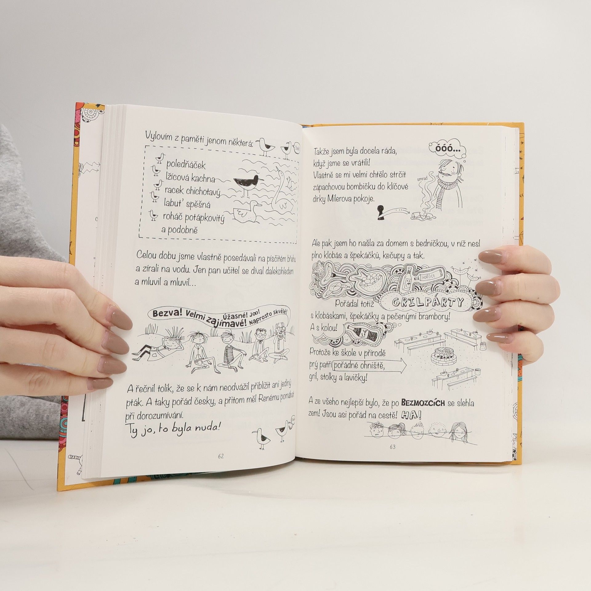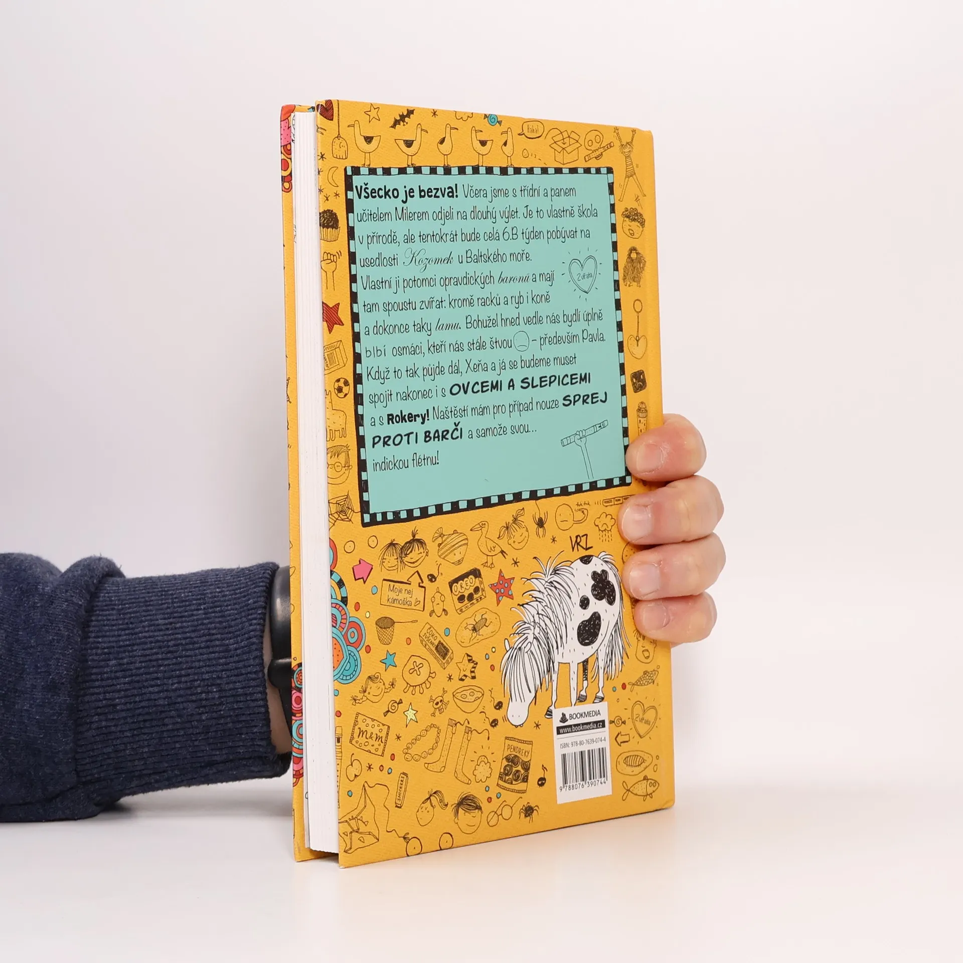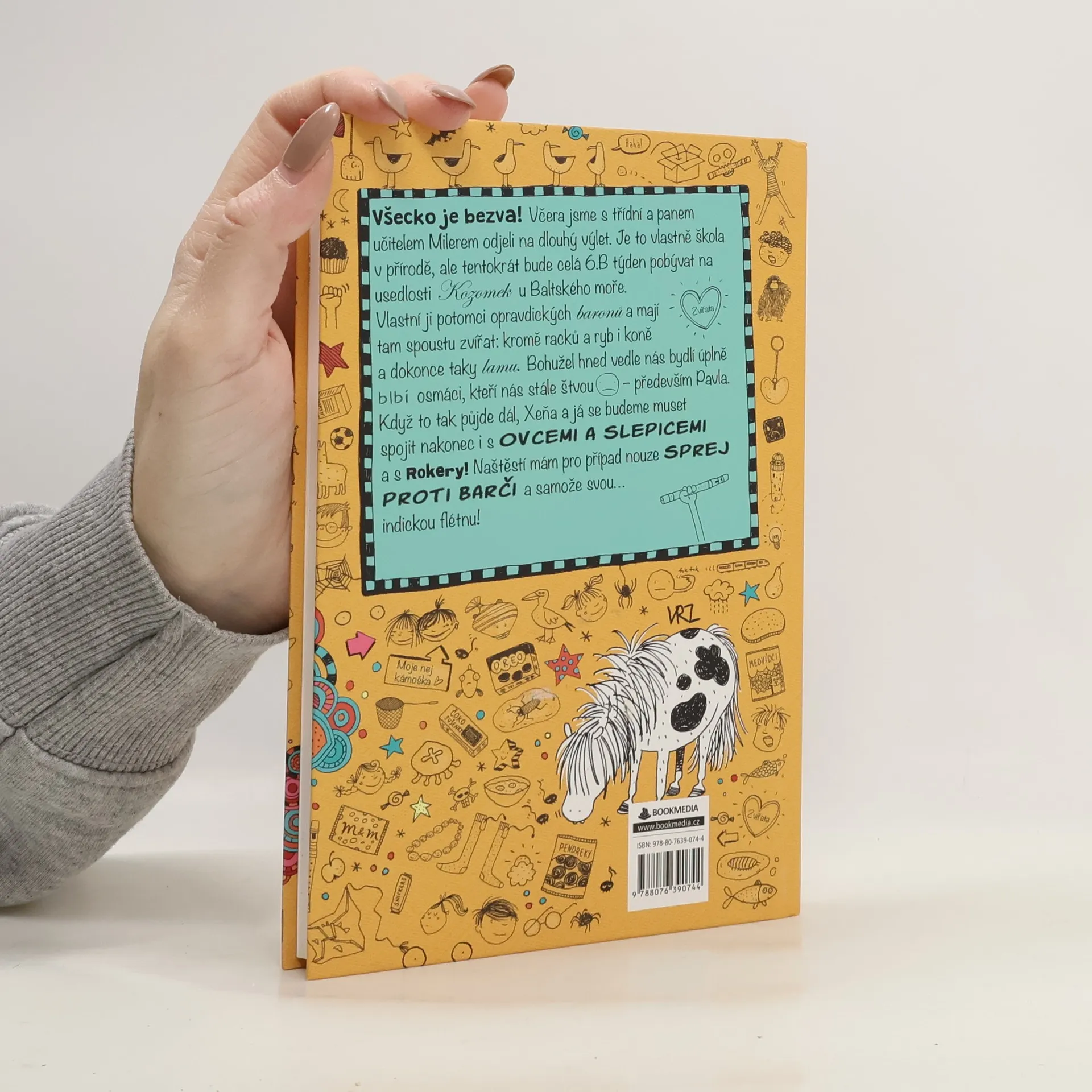 Všecko je bezva! Včera jsme s třídní a panem učitelem Milerem odjeli na dlouhý výlet. Je to vlastně škola v přírodě, ale tentokrát bude celá 6.B týden pobývat na usedlosti Kozomek u Baltského moře. Vlastní ji potomci opravdických baronů a mají tam spoustu zvířat: kromě racků a ryb i koně, a dokonce taky lamu. Bohužel hned vedle nás bydlí úplně blbí osmáci, kteří nás stále štvou - především Pavla. Když to tak půjde dál, Xeňa a já se budeme muset spojit nakonec i s Ovcemi a slepicemi a s Rokery! Naštěstí mám pro případ nouze sprej proti Barči a samože svou… indickou flétnu!